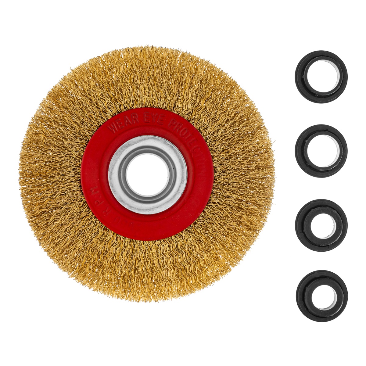 Наличие клапана для сброса давления Щетка для точила, 125 мм, посадка 20 мм, плоская, латунированная витая проволока Matrix
