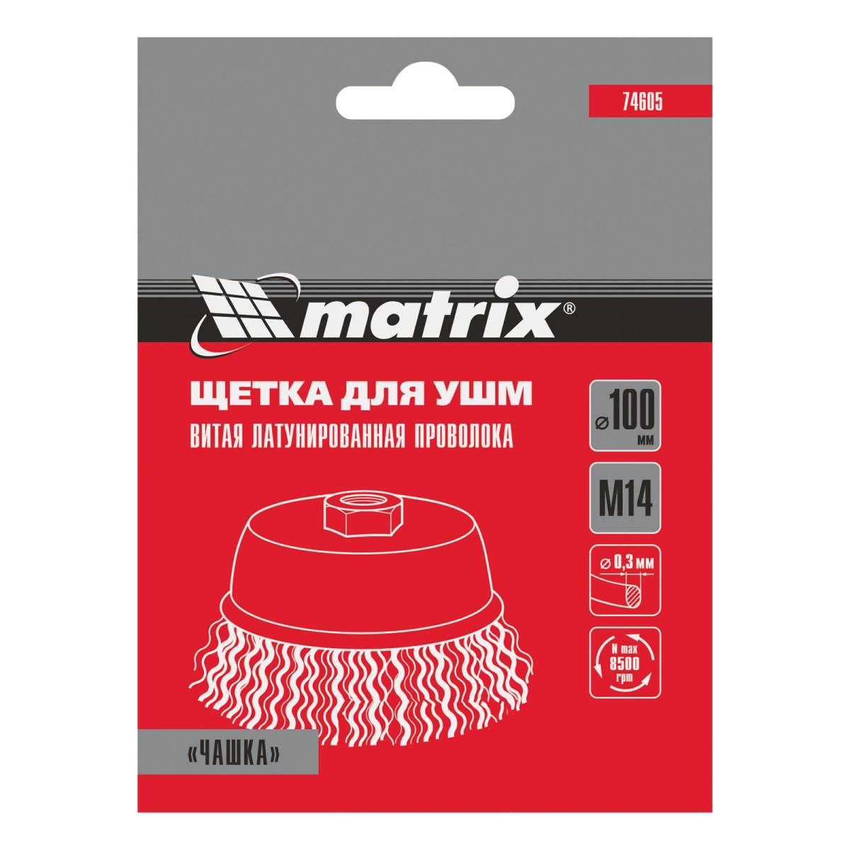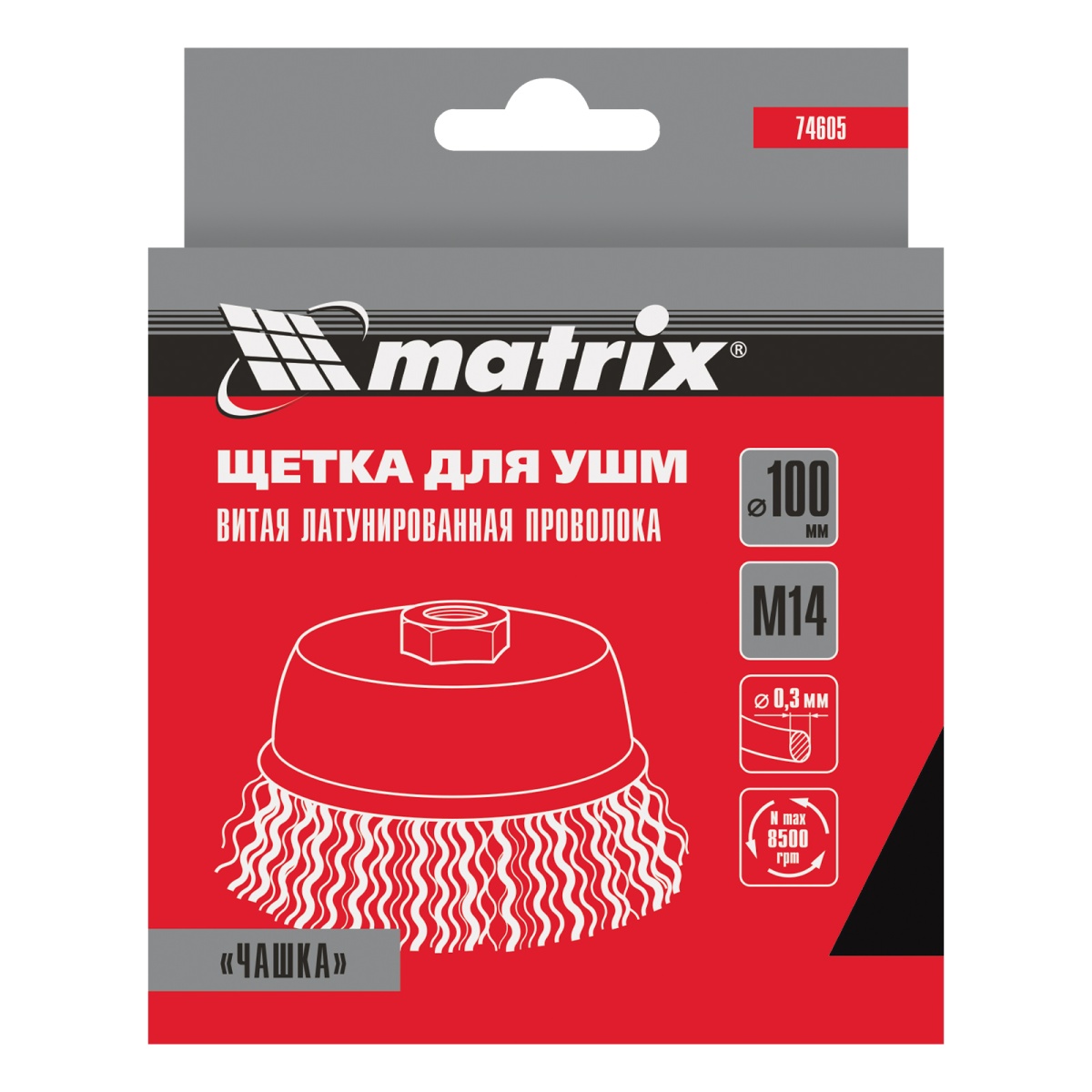 Наличие клапана для сброса давления Щетка для УШМ, 100 мм, М14, "чашка", латунированная витая проволока Matrix