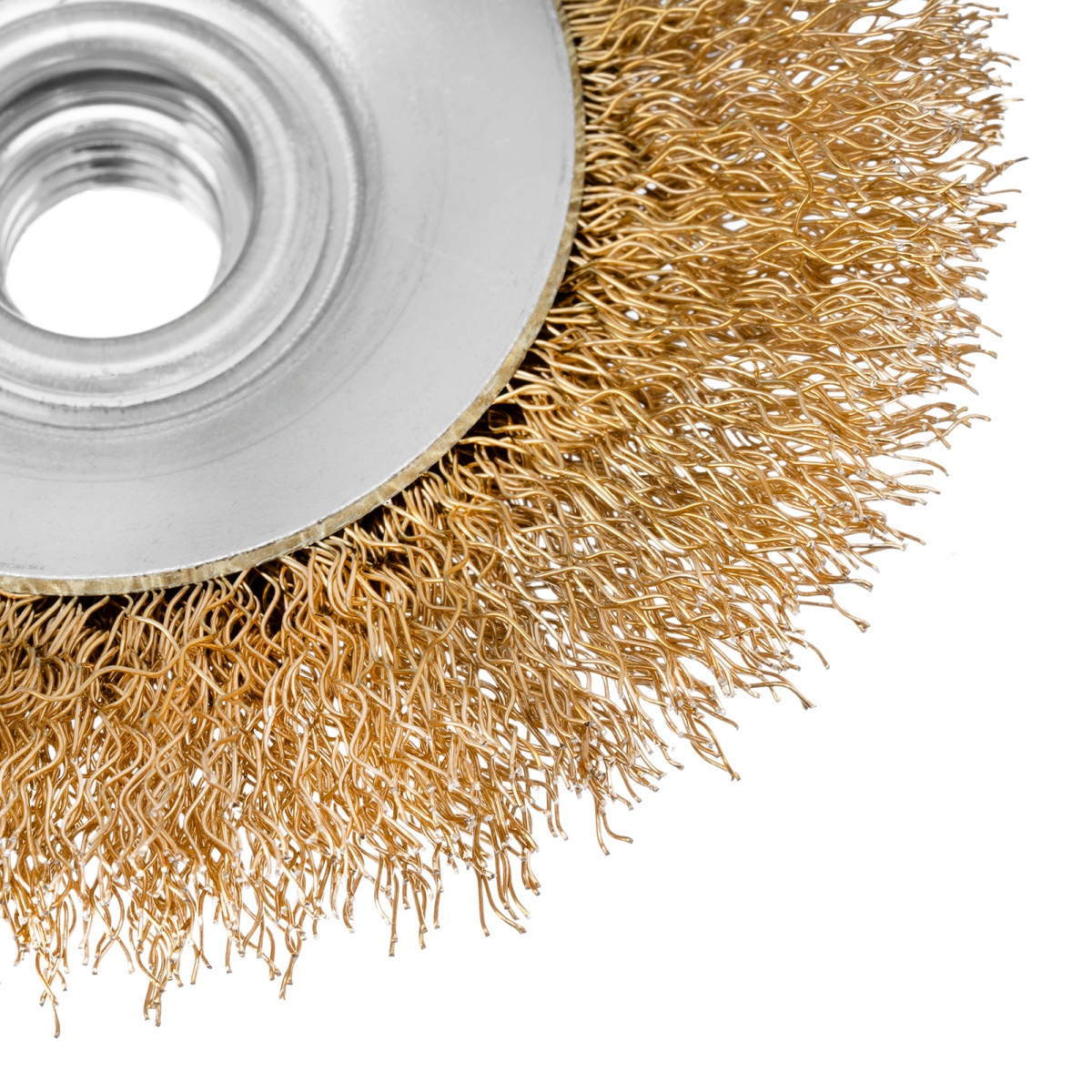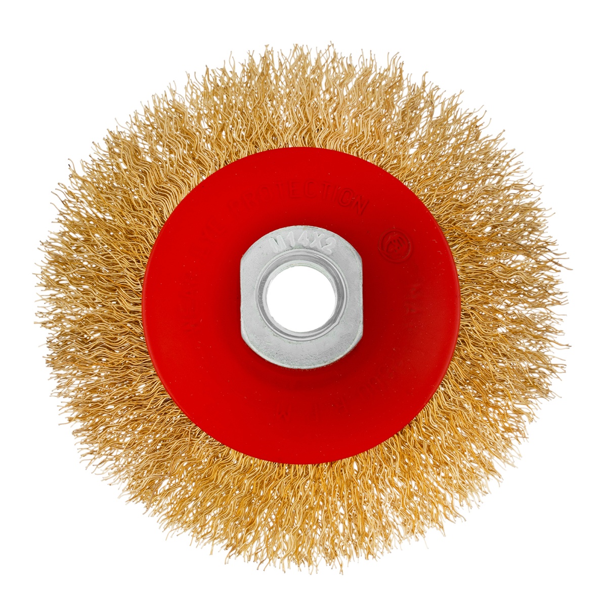 Купить Щетка для УШМ, 100 мм, М14, "тарелка", латунированная витая проволока Matrix V8086 по лучшей цене с доставкой - интернет магазин №1 в России