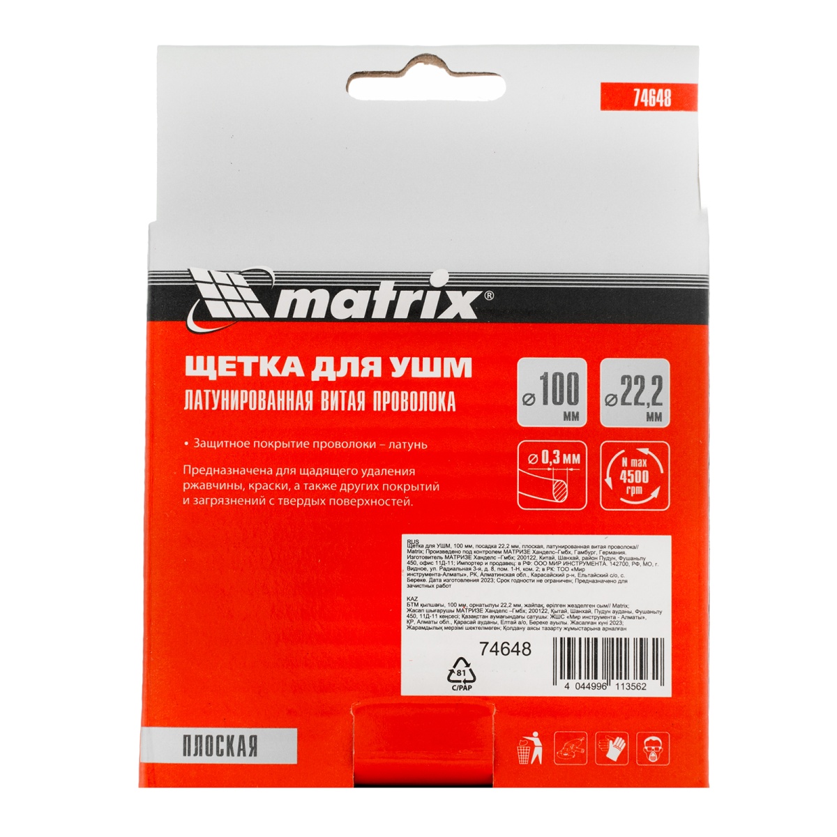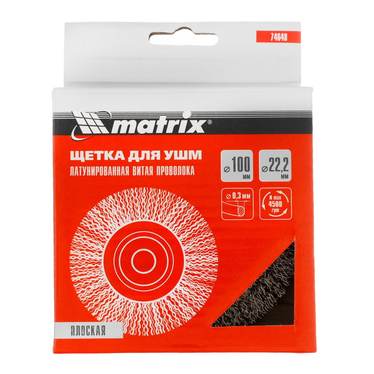 Наличие клапана для сброса давления Щетка для УШМ, 100 мм, посадка 22.2 мм, плоская, латунированная витая проволока Matrix