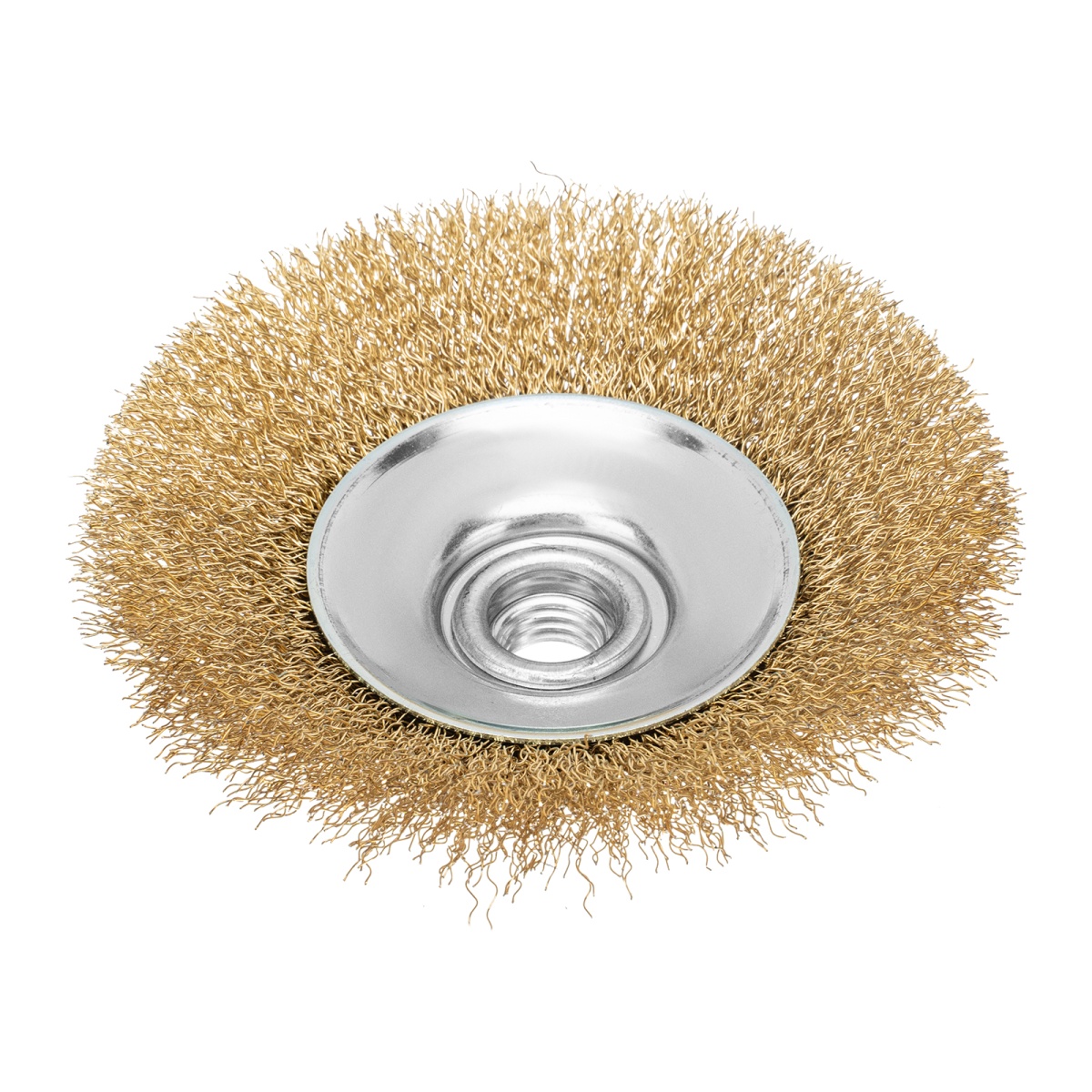 Купить Щетка для УШМ, 115 мм, М14, "тарелка", латунированная витая проволока Matrix V8100 по лучшей цене с доставкой - интернет магазин №1 в России