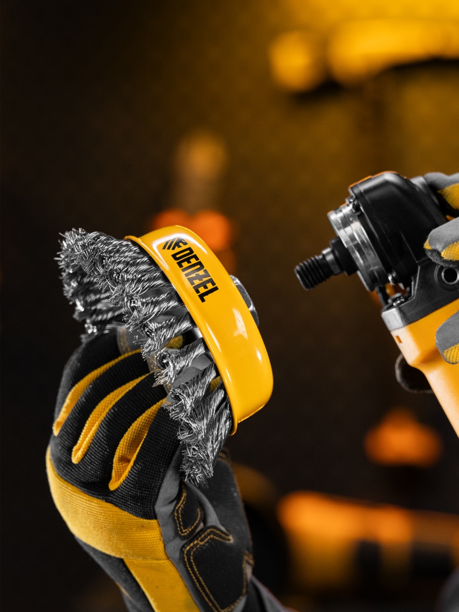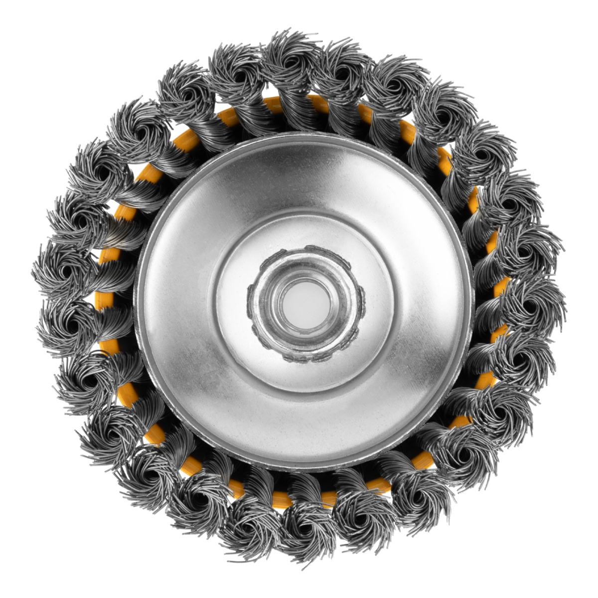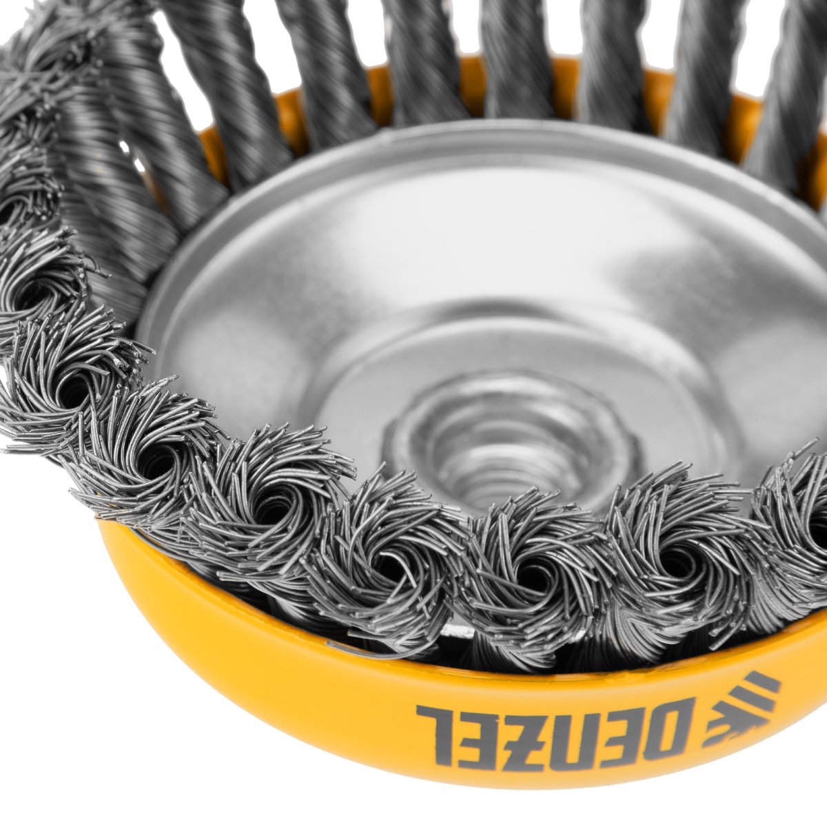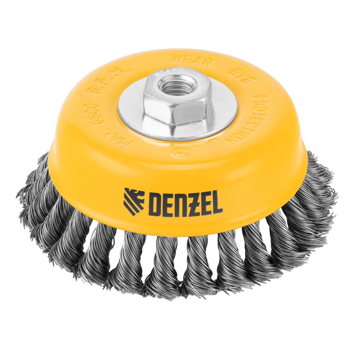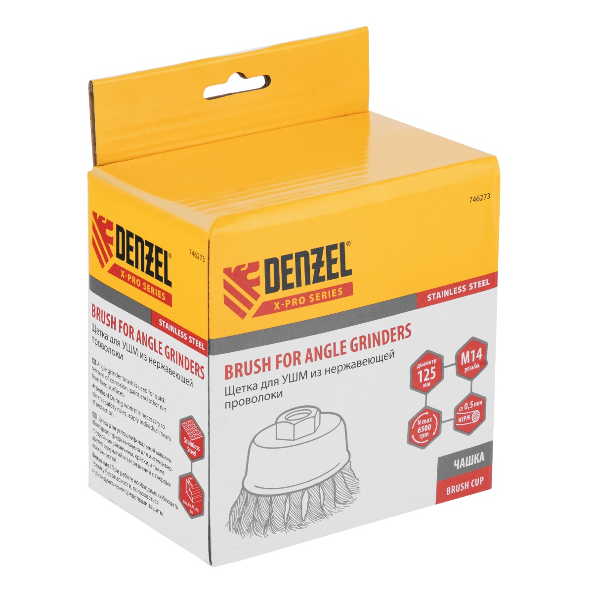 Щетка для УШМ, 125 мм, "Чашка", крученая нержавеющая проволока 0.5 мм, М14 Denzel