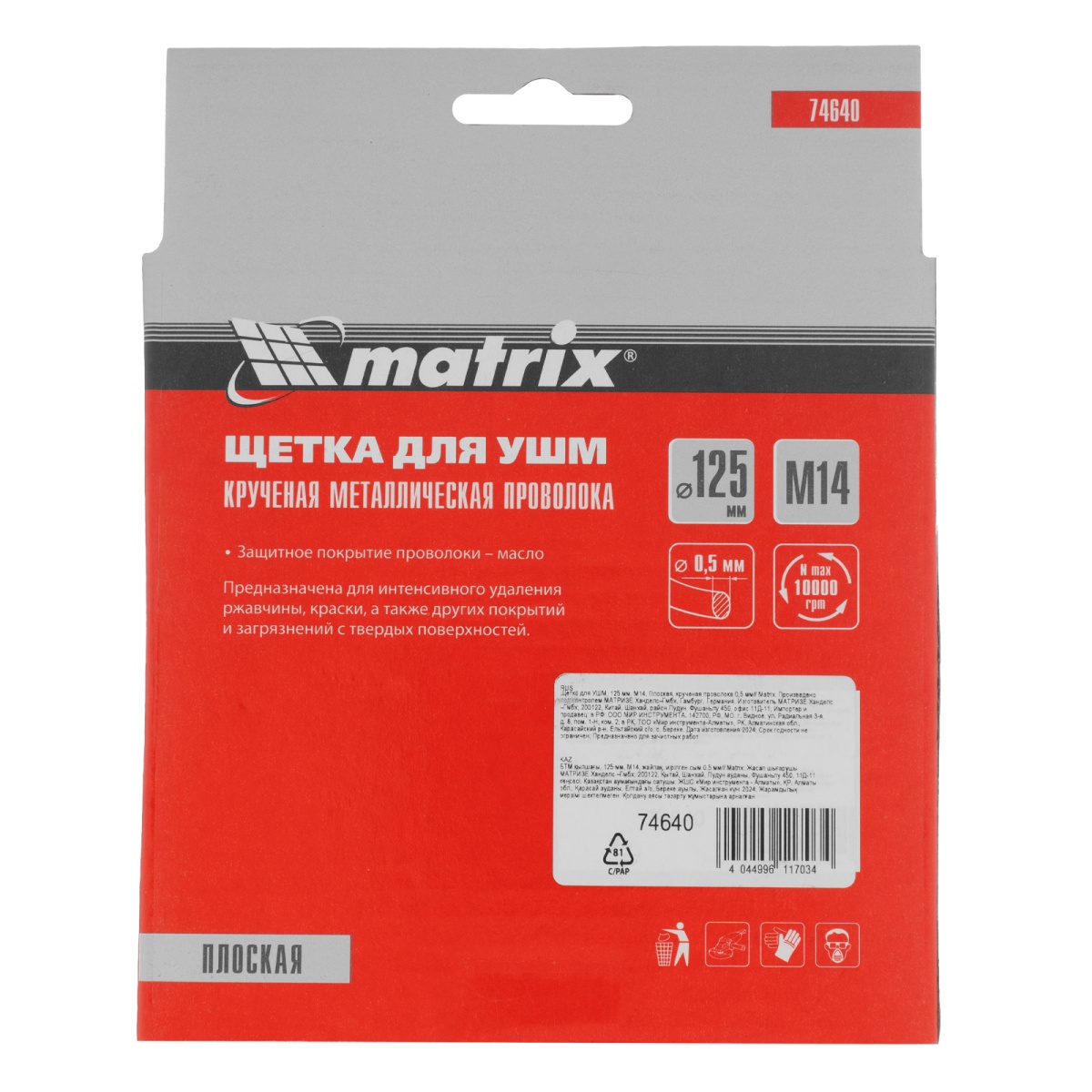 Купить Щетка для УШМ 125 мм, М14, плоская, крученая проволока 0.5 мм Matrix V8070 по лучшей цене с доставкой - интернет магазин №1 в России