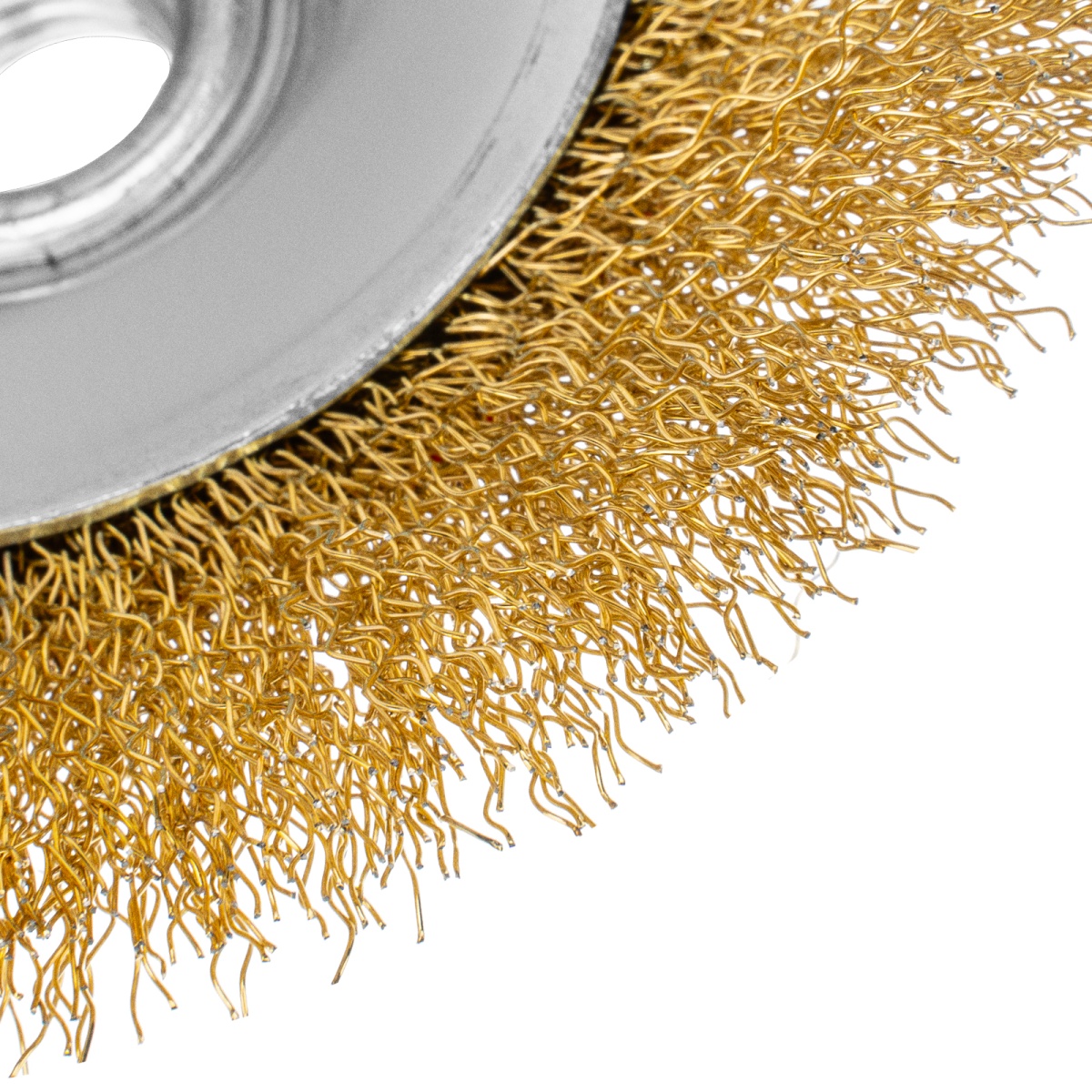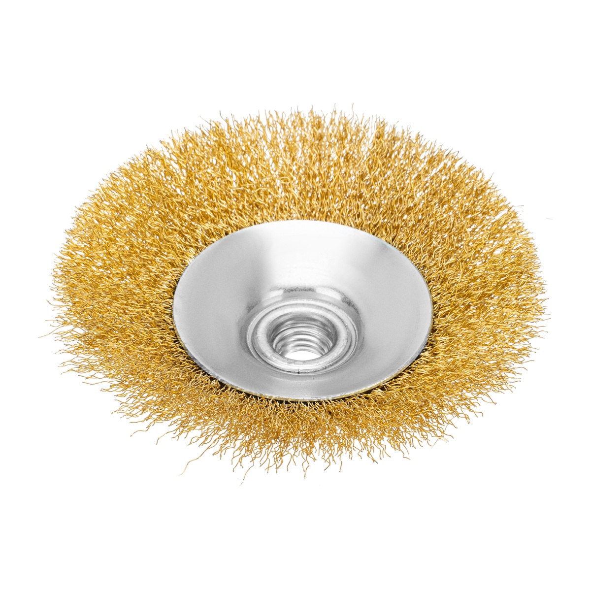 Купить Щетка для УШМ, 125 мм, М14, "тарелка", латунированная витая проволока Matrix V8107 по лучшей цене с доставкой - интернет магазин №1 в России