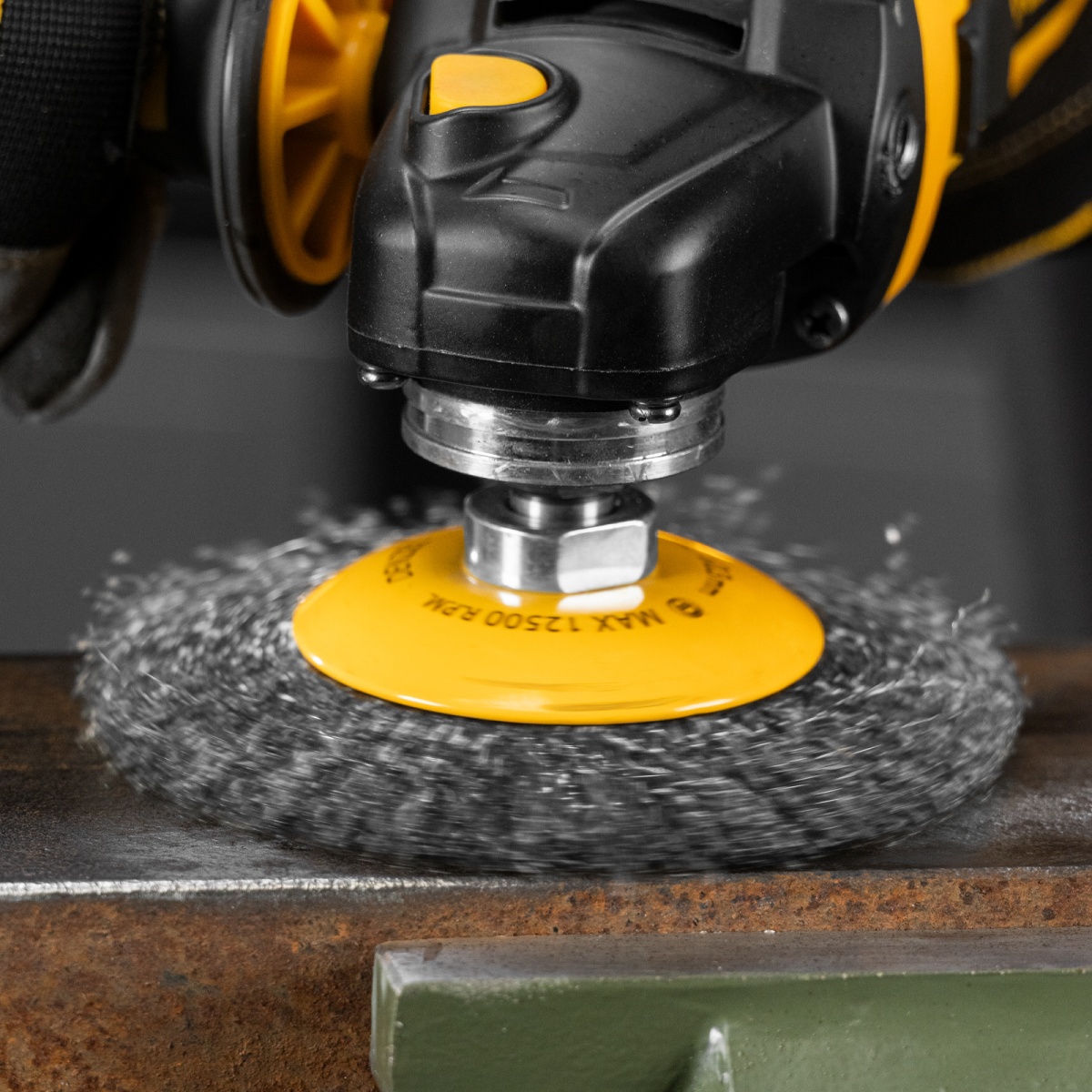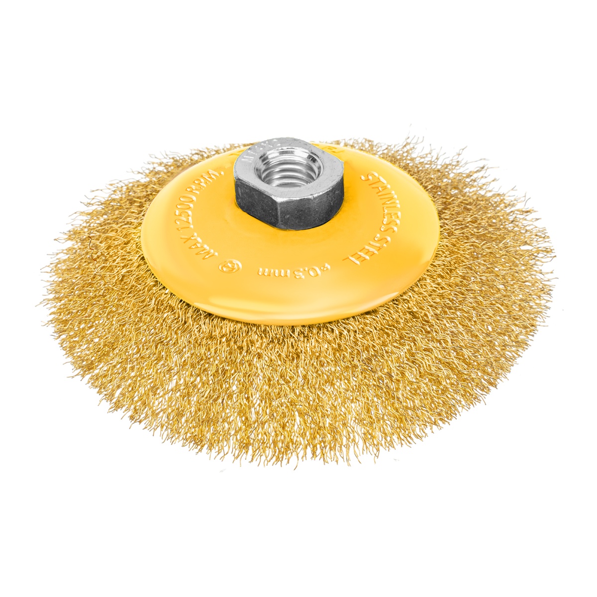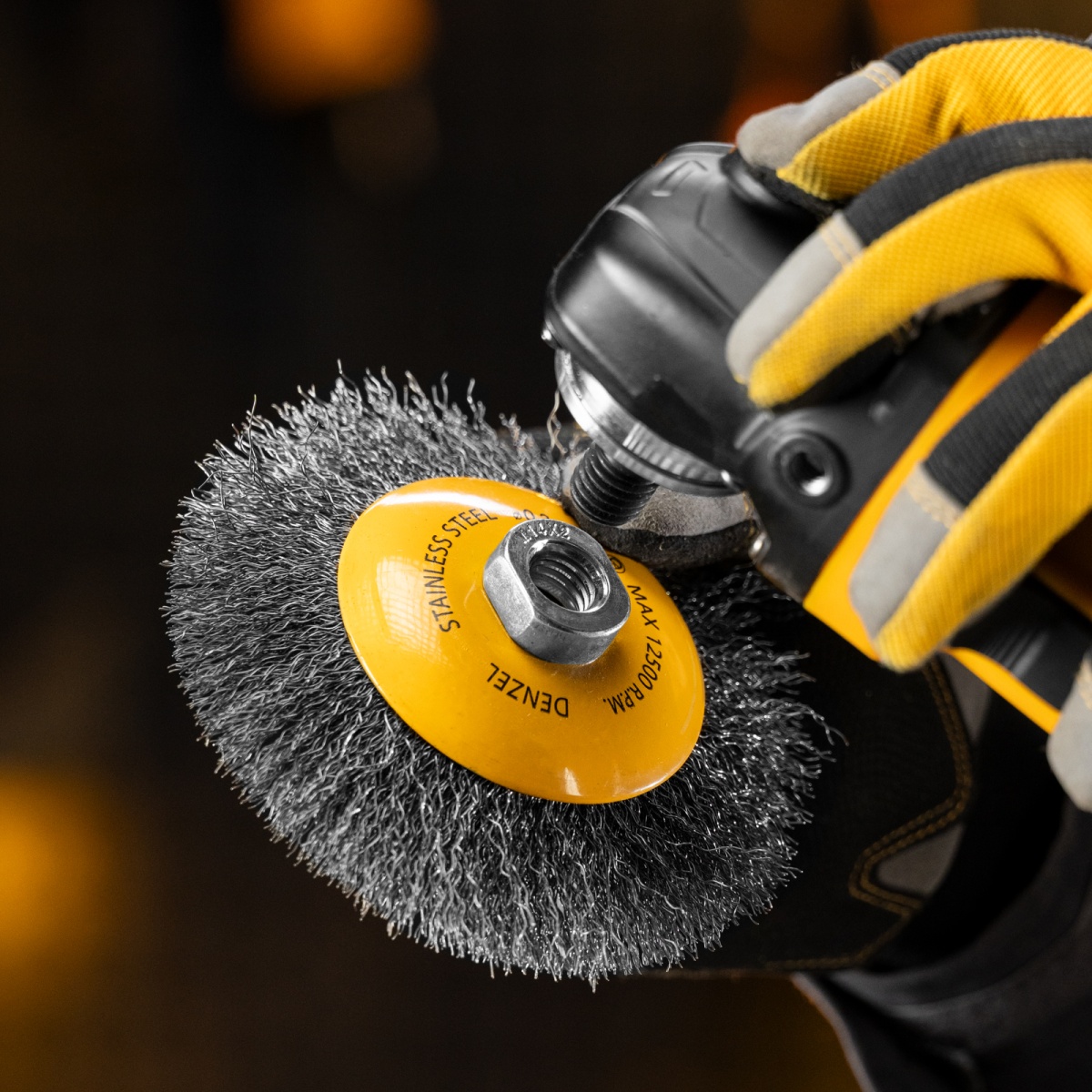 Наличие клапана для сброса давления Щетка для УШМ, 125 мм, "Тарелка", витая нержавеющая проволока 0.3 мм, М14 Denzel