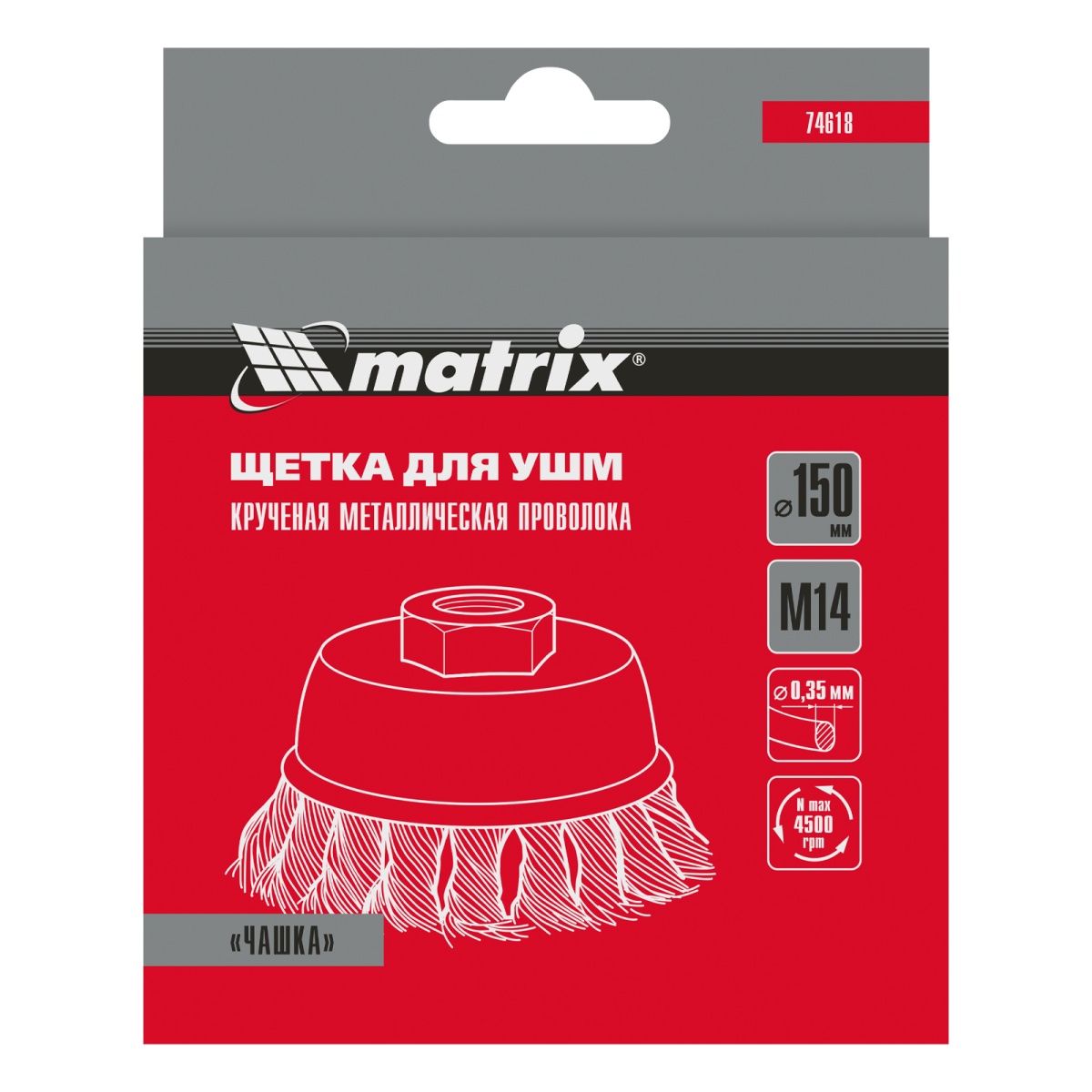 Наличие клапана для сброса давления Щетка для УШМ, 150 мм, М14, "чашка", крученая проволока 0.35 мм Matrix