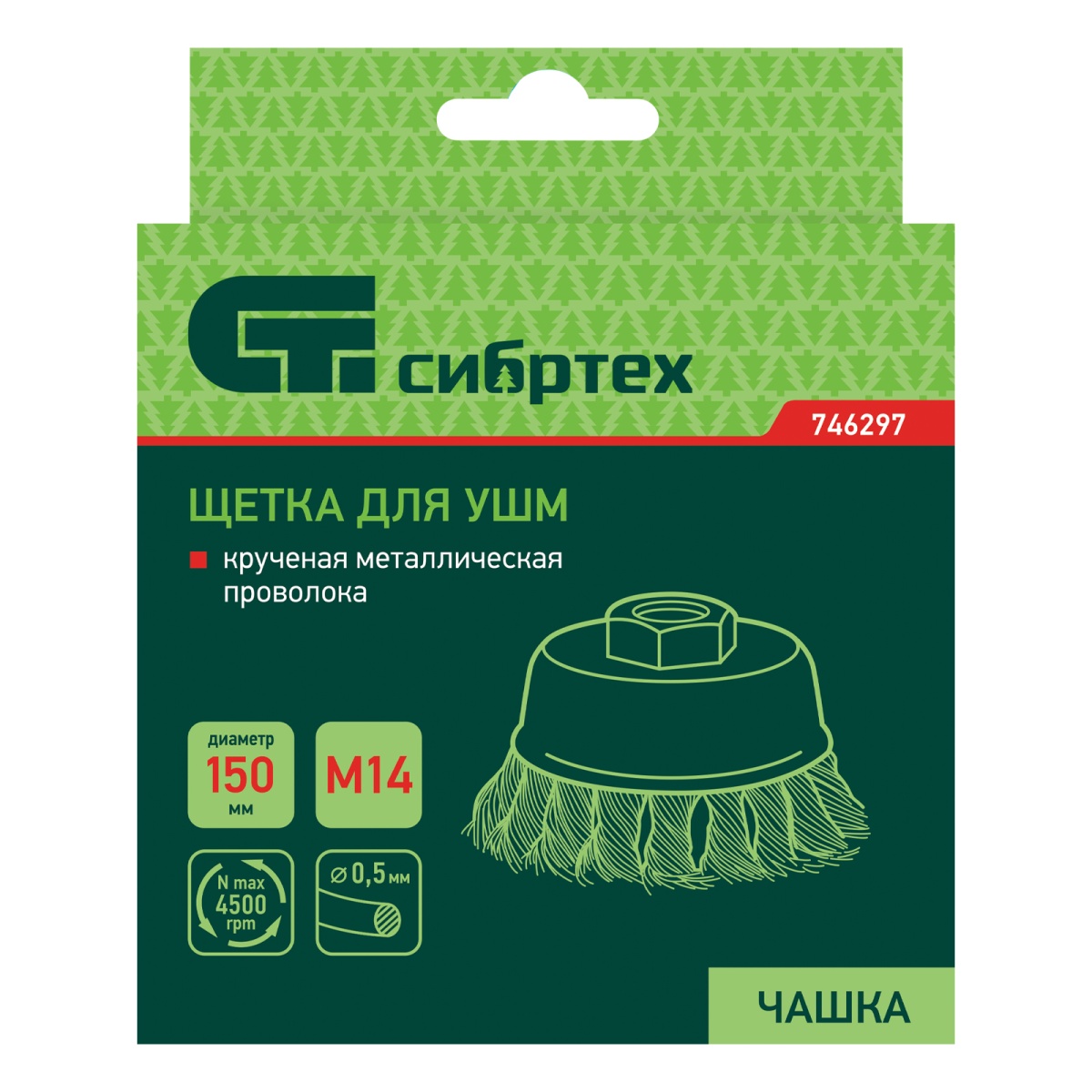 Щетка для УШМ, 150 мм, М14, "чашка", крученая проволока 0.5 мм Сибртех