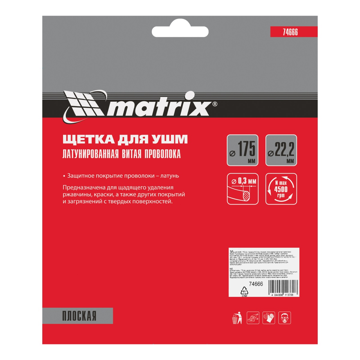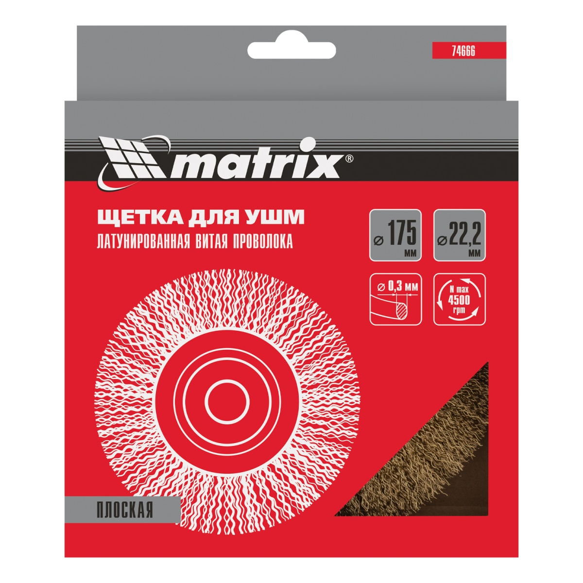 Купить Щетка для УШМ, 175 мм, посадка 22.2 мм, плоская, латунированная витая проволока Matrix V8126 по лучшей цене с доставкой - интернет магазин №1 в России