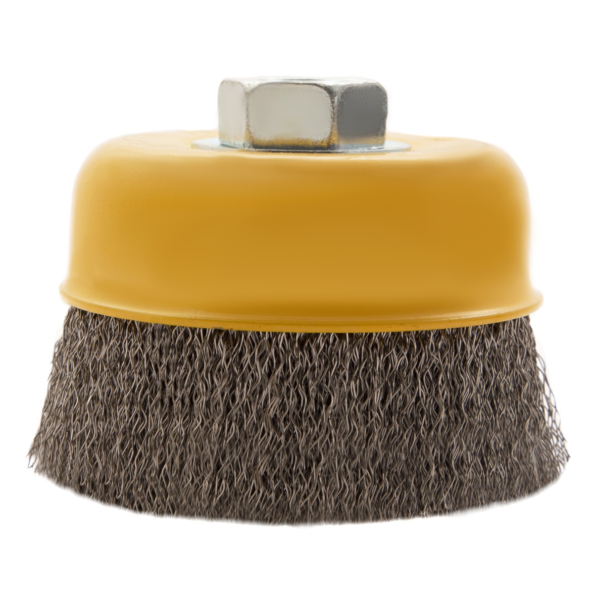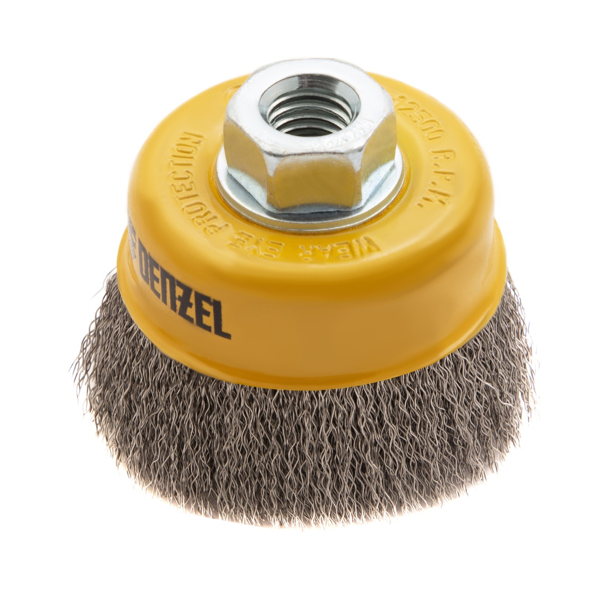 Купить Щетка для УШМ, 75 мм, "Чашка", витая нержавеющая проволока 0.3 мм, М14 Denzel V8135 по лучшей цене с доставкой - интернет магазин №1 в России