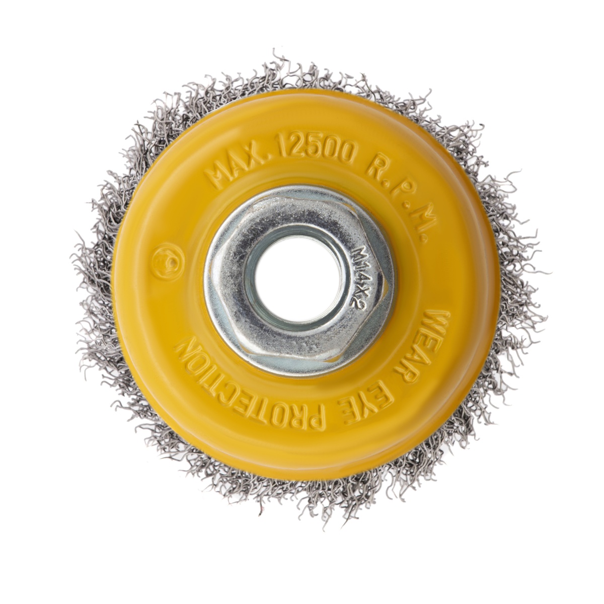 Наличие клапана для сброса давления Щетка для УШМ, 75 мм, "Чашка", витая нержавеющая проволока 0.3 мм, М14 Denzel