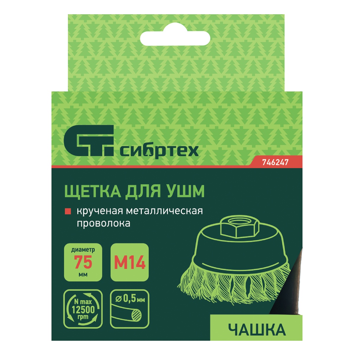Купить Щетка для УШМ, 75 мм, М14, "чашка", крученая металлическая проволока Сибртех V8138 по лучшей цене с доставкой - интернет магазин №1 в России