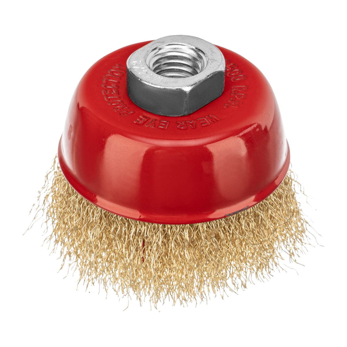 Купить Щетка для УШМ, 75 мм, М14, "чашка", латунированная витая проволока Matrix V8141 по лучшей цене с доставкой - интернет магазин №1 в России