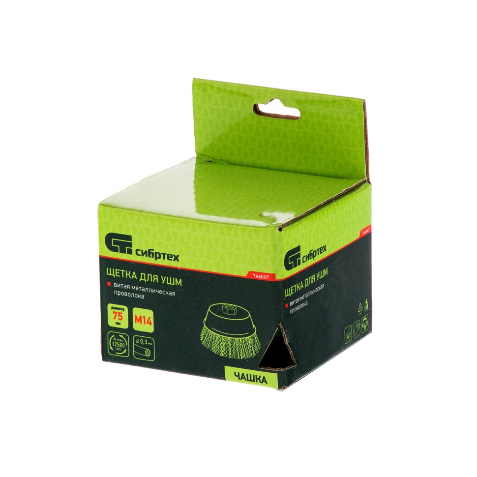 Купить Щетка для УШМ, 75 мм, М14, "чашка", витая проволока 0.3 мм Сибртех V8137 по лучшей цене с доставкой - интернет магазин №1 в России