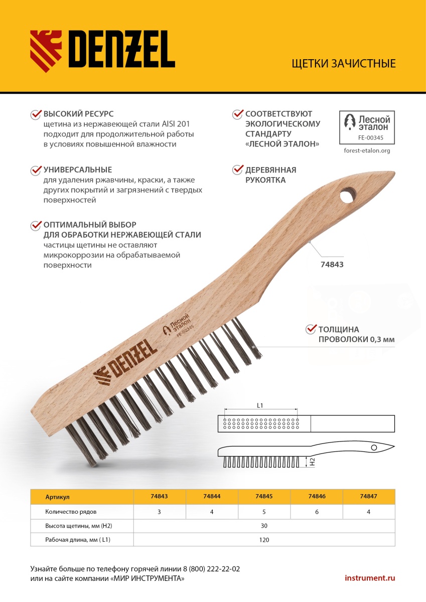 Купить Щетка зачистная 6-и рядная, прямая проволока из нержавеющей стали с деревянной ручкой, EFP// Denzel V8150 по лучшей цене с доставкой - интернет магазин №1 в России