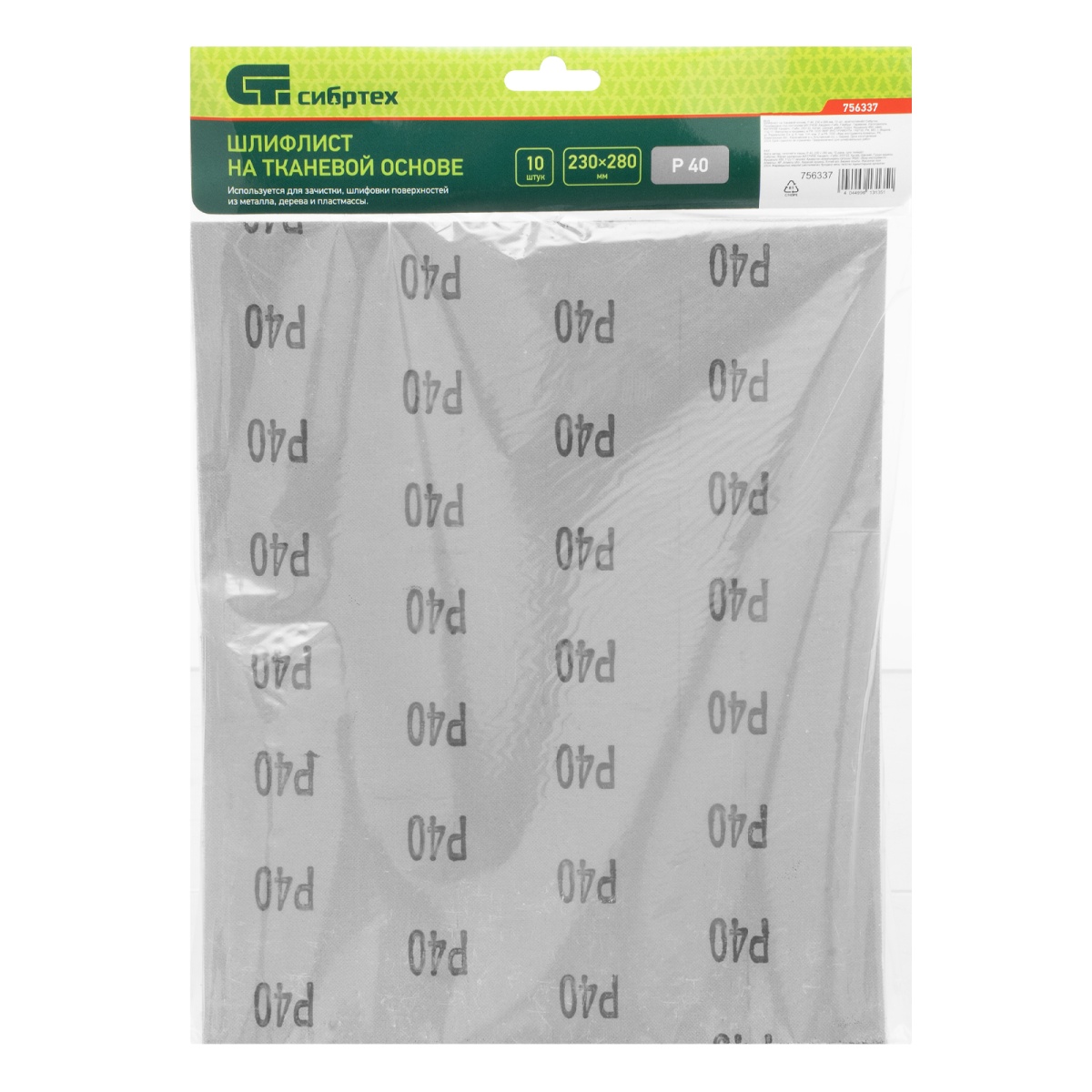 Купить Шлифлист на тканевой основе, P 40, 230 х 280 мм, 10 шт, влагостойкий Сибртех V7798 по лучшей цене с доставкой - интернет магазин №1 в России