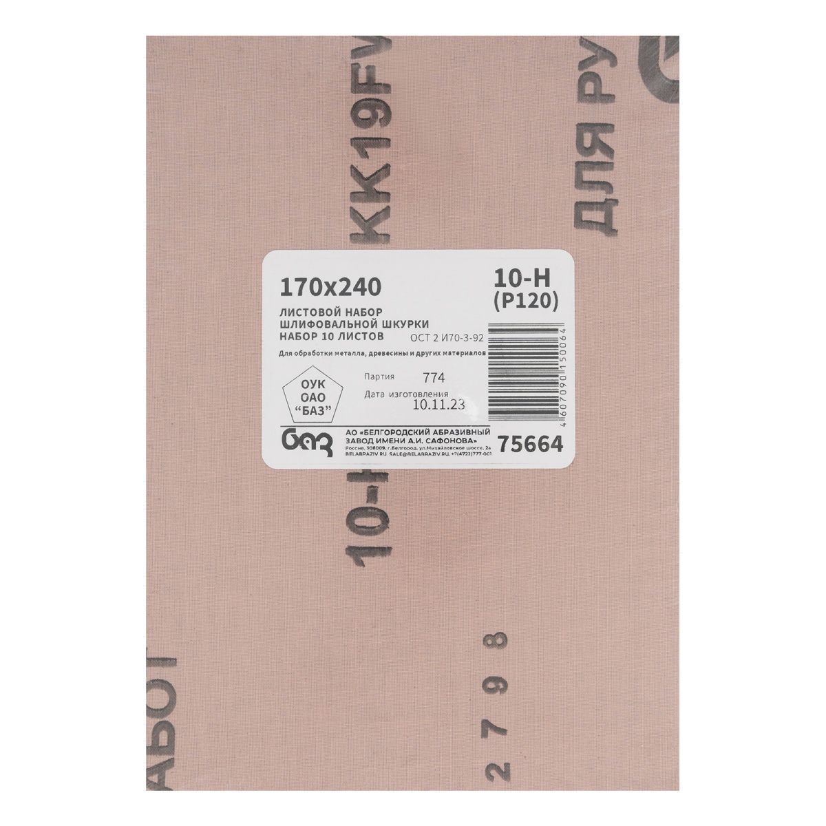 Наличие клапана для сброса давления Шлифлист на тканевой основе, зернистость № 10, 240 х 170 мм, 10 шт, водостойкий, "БАЗ"