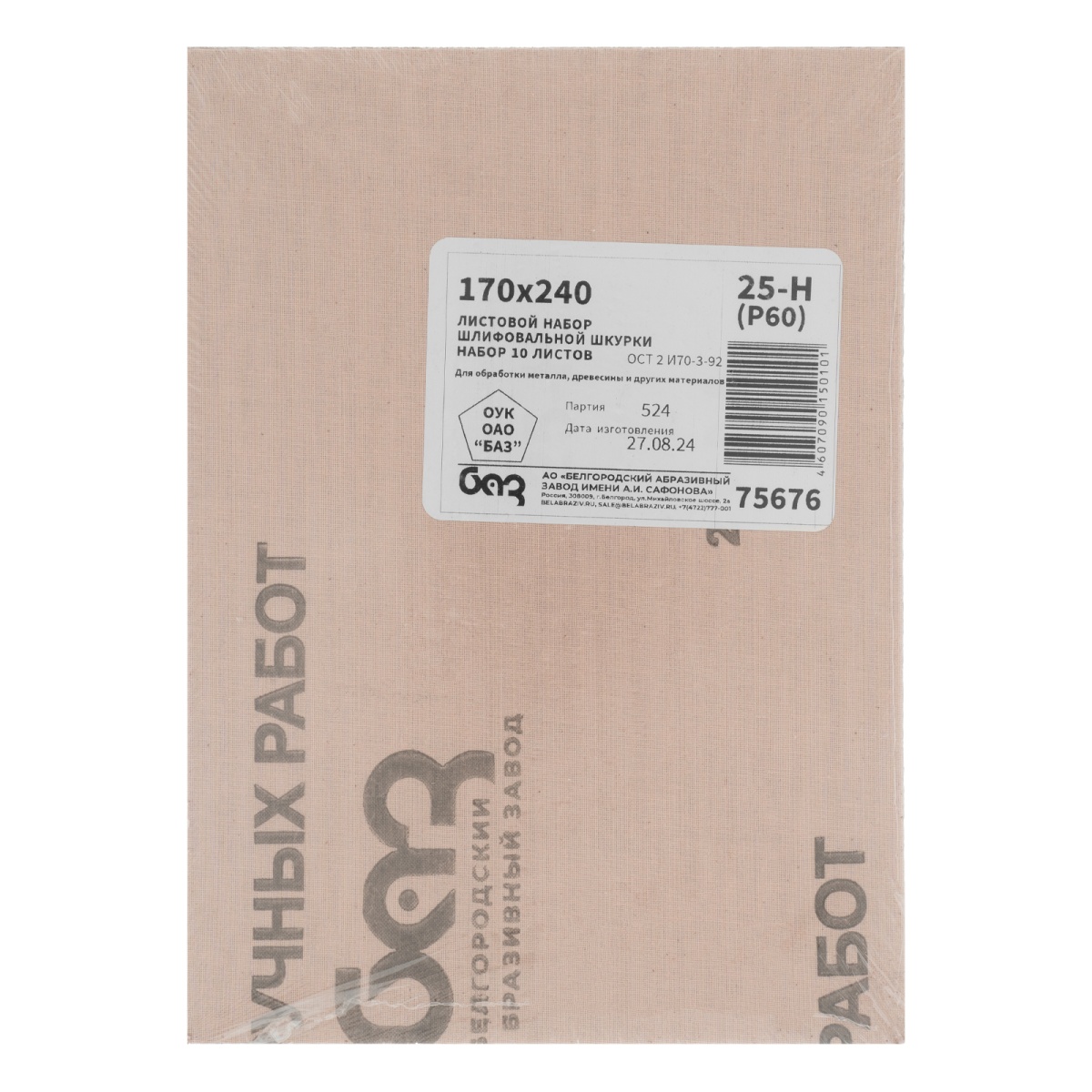 Купить Шлифлист на тканевой основе, зернистость № 25, 240 х 170 мм, 10 шт, водостойкий, "БАЗ" V7808 по лучшей цене с доставкой - интернет магазин №1 в России