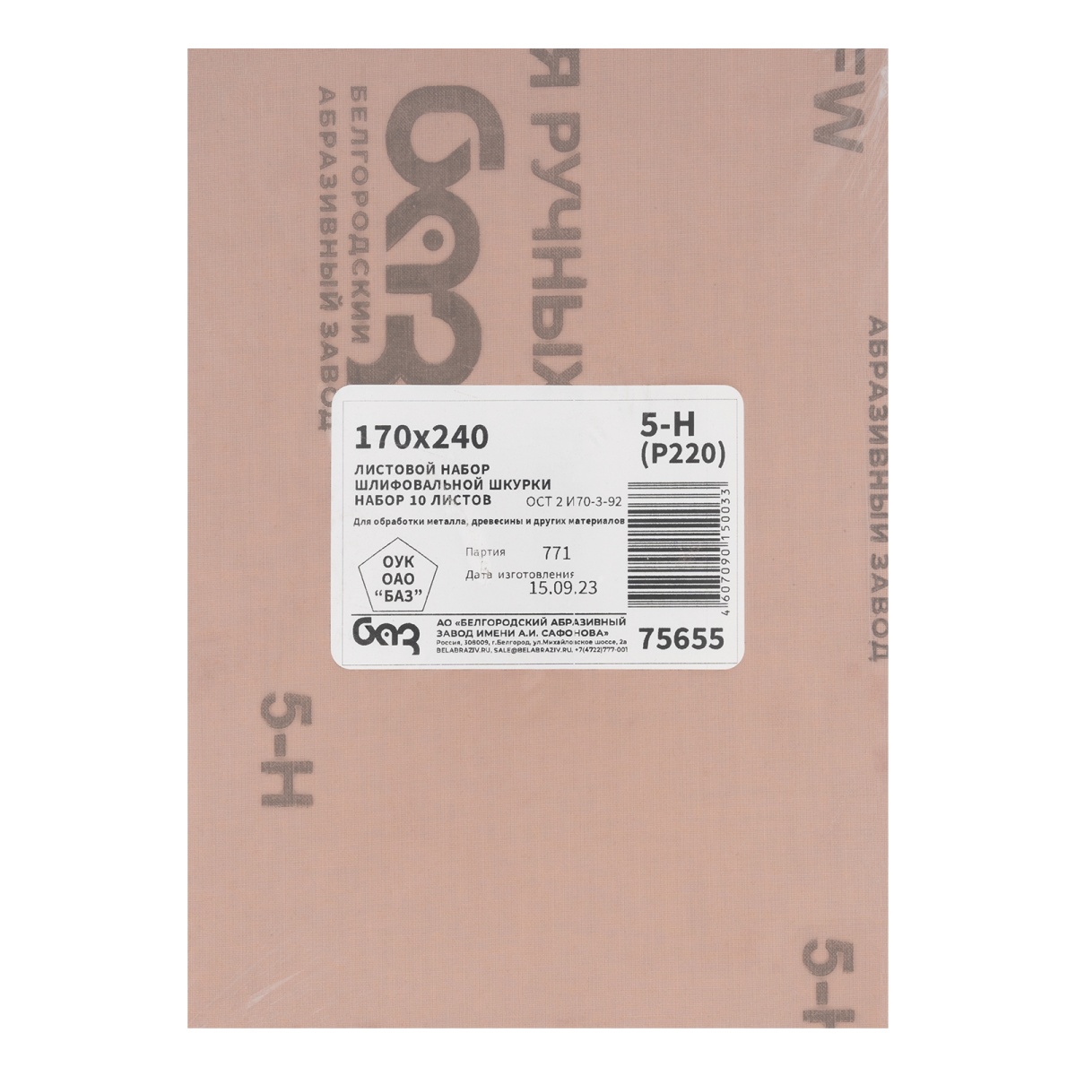 Купить Шлифлист на тканевой основе, зернистость № 5, 240 х 170 мм, 10 шт, водостойкий, "БАЗ" V7812 по лучшей цене с доставкой - интернет магазин №1 в России
