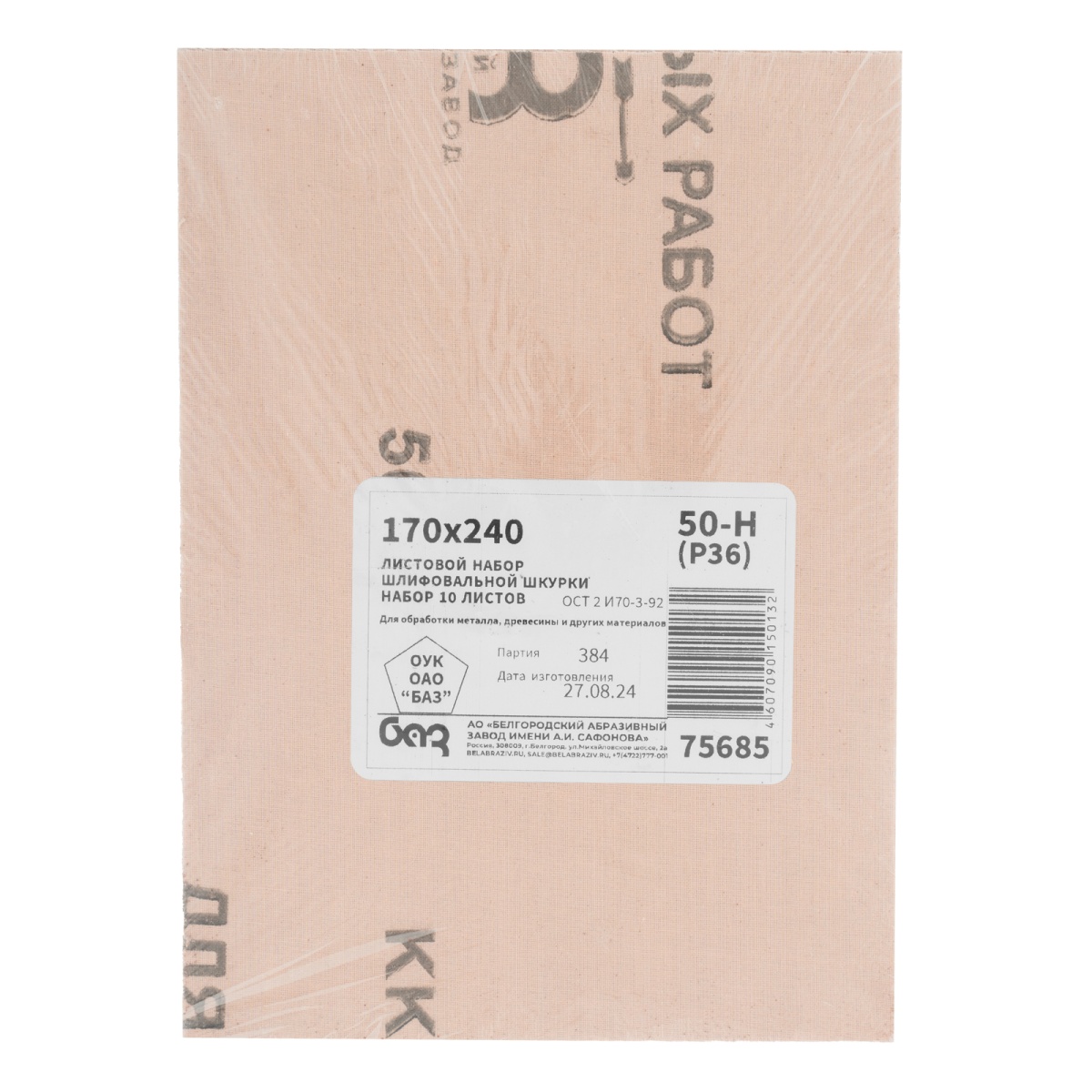 Купить Шлифлист на тканевой основе, зернистость № 50, 240 х 170 мм, 10 шт, водостойкий, "БАЗ" V7813 по лучшей цене с доставкой - интернет магазин №1 в России