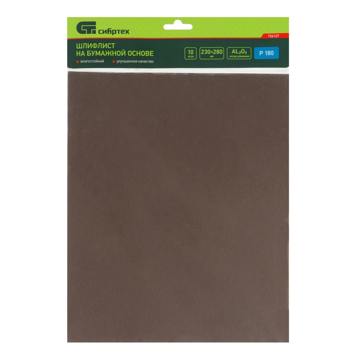 Купить Шлифлист на бумажной основе, P 180, 230 х 280 мм, 10 шт, влагостойкий Сибртех V7779 по лучшей цене с доставкой - интернет магазин №1 в России
