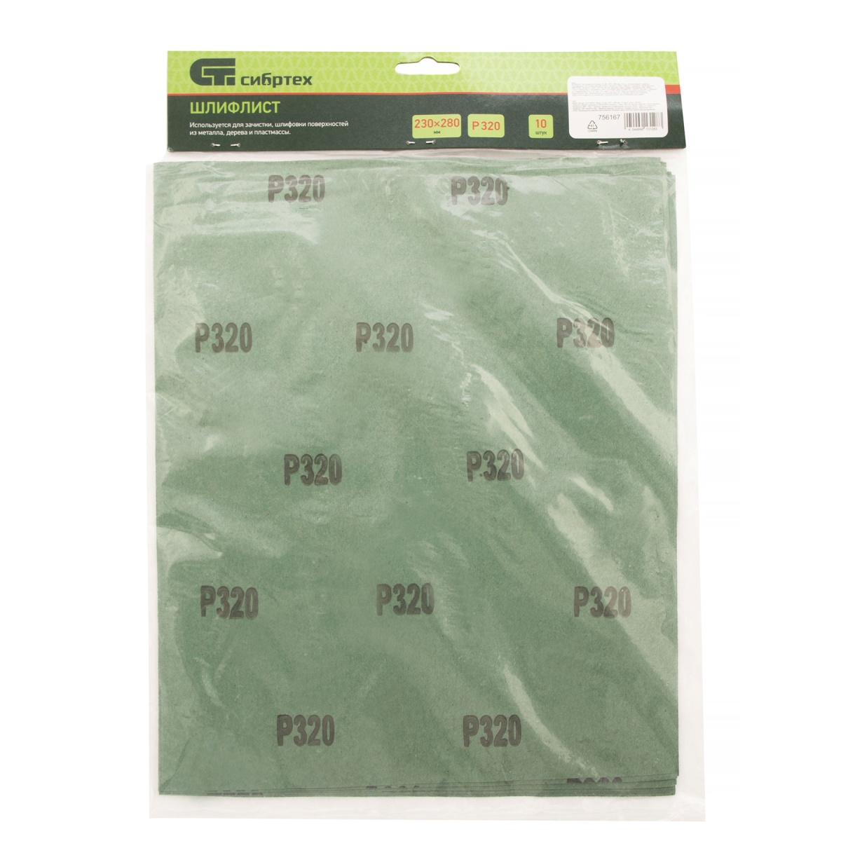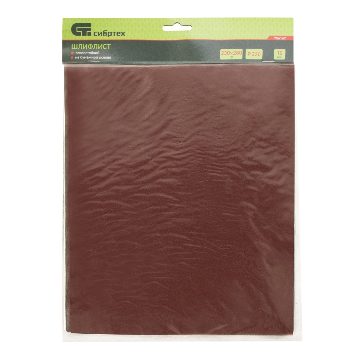 Шлифлист на бумажной основе, P 320, 230 х 280 мм, 10 шт, влагостойкий Сибртех