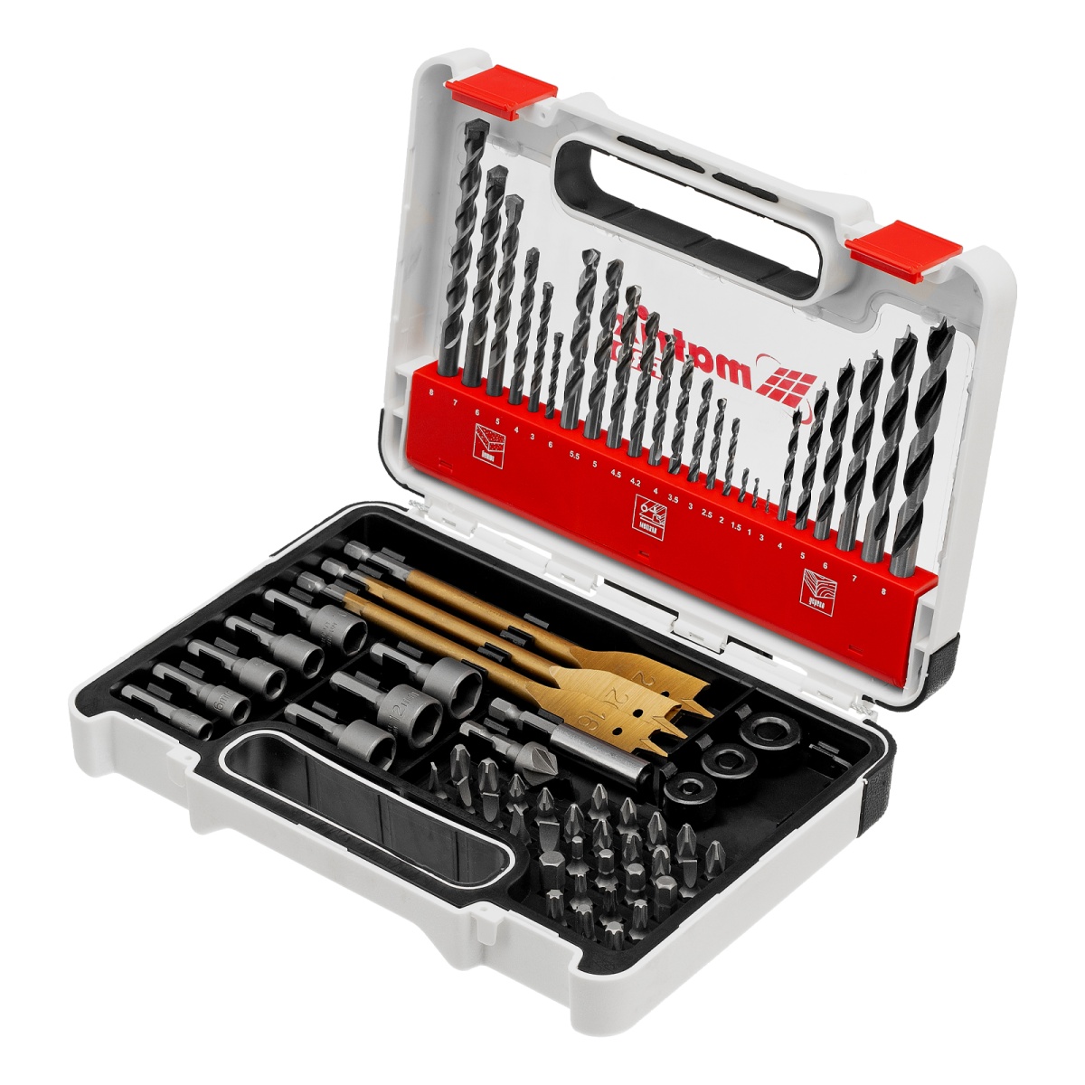 Купить Набор сверл комбинированный, сверла по металлу 1-6 мм, бетону 3-8 мм, дереву 3-8 мм, перовые 16,20,22 мм, биты 30 шт, адаптер, головки 8 шт, 71 предмет Pro Matrix V4521 по лучшей цене с доставкой - интернет магазин №1 в России