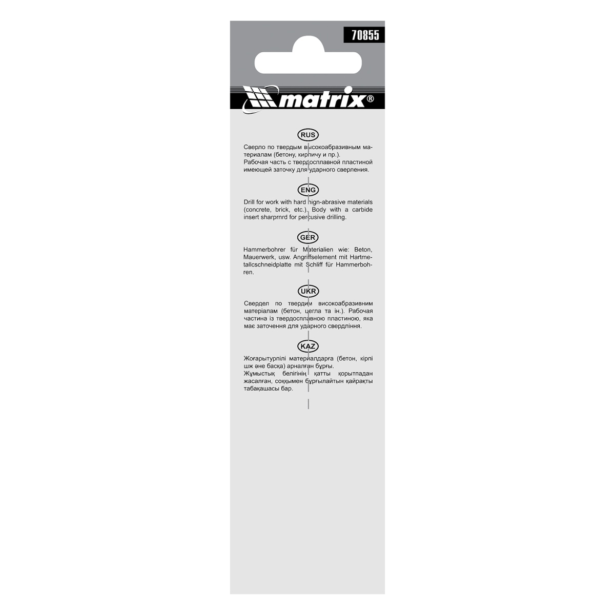 Сверло по бетону, 6 х 100 мм, цилиндрический хвостовик Matrix