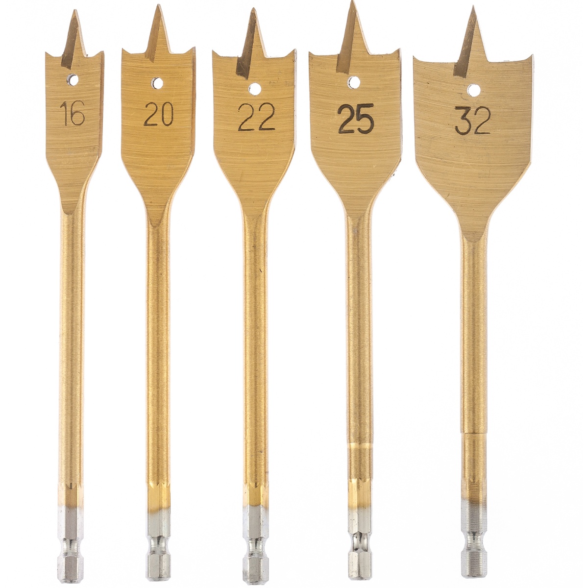 Набор сверл перовых по дереву, 16-20-22-25-32 мм, 5 шт, пластиковый кейс, Matrix