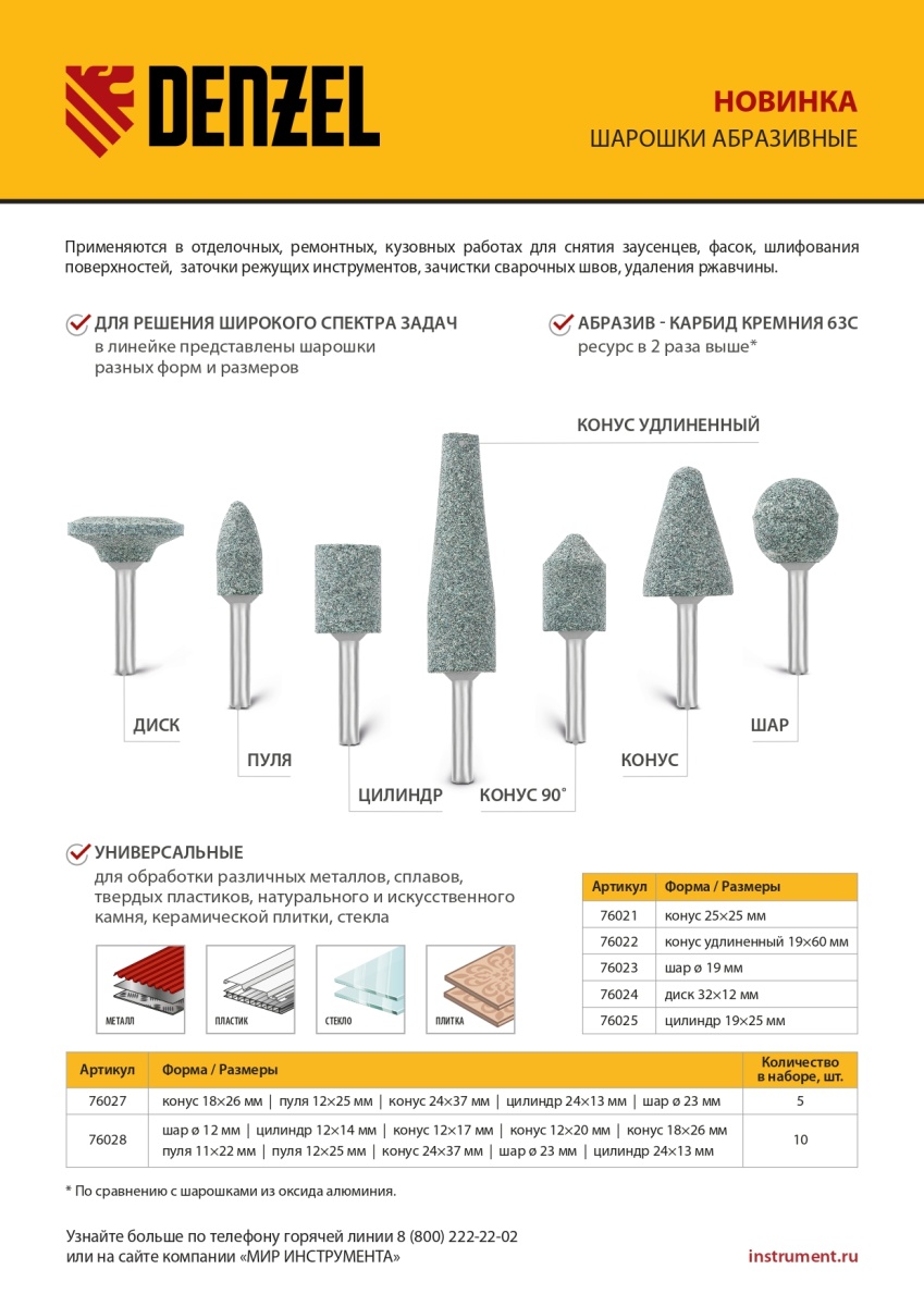 Наличие клапана для сброса давления Шарошка абразивная, конус, для дрели, 25 x 25 мм, хвостовик d6 мм, 63С Denzel