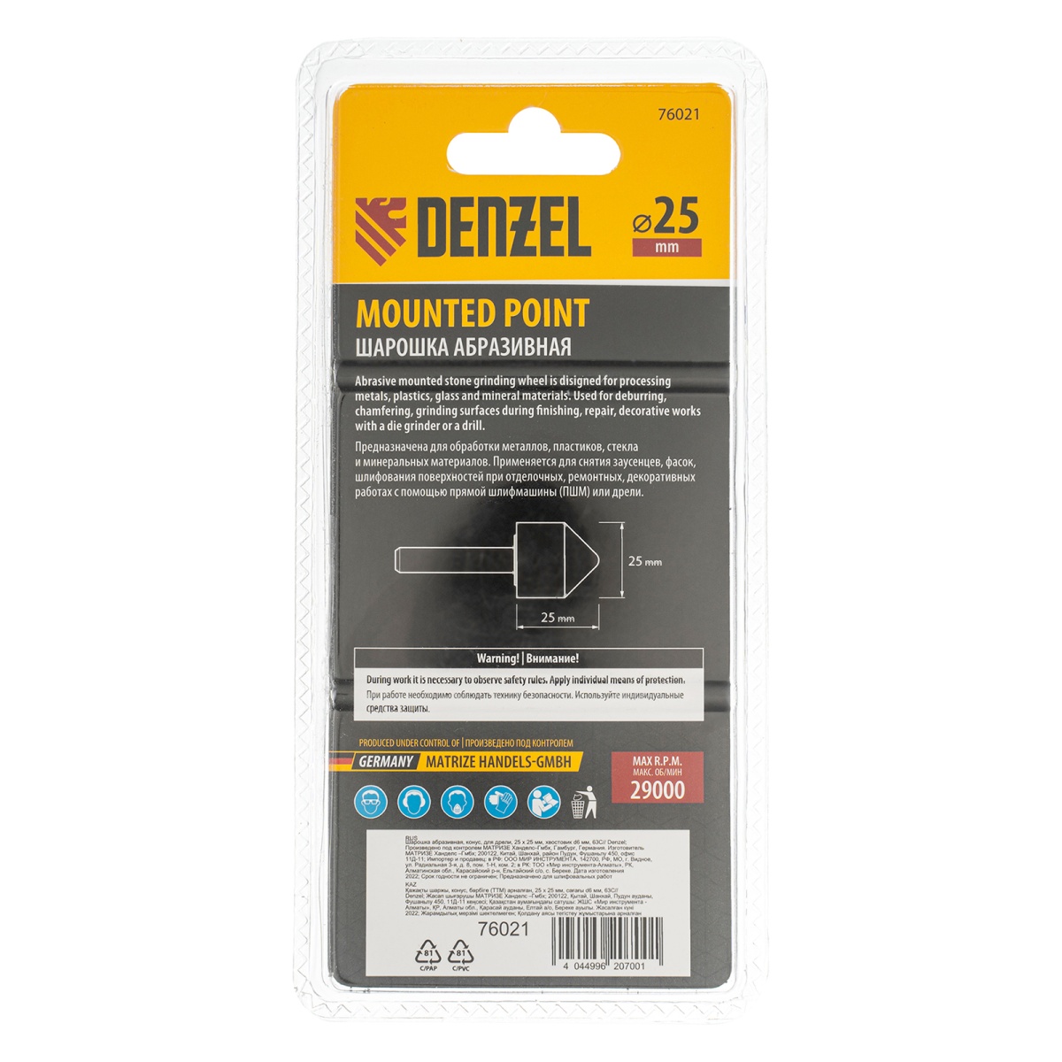 Шарошка абразивная, конус, для дрели, 25 x 25 мм, хвостовик d6 мм, 63С Denzel