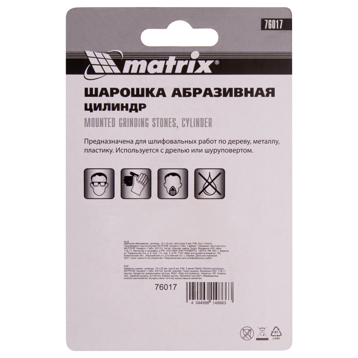 Купить Шарошка абразивная, цилиндр, 19 x 25 x 6 мм, F46, 3 шт Matrix V7620 по лучшей цене с доставкой - интернет магазин №1 в России