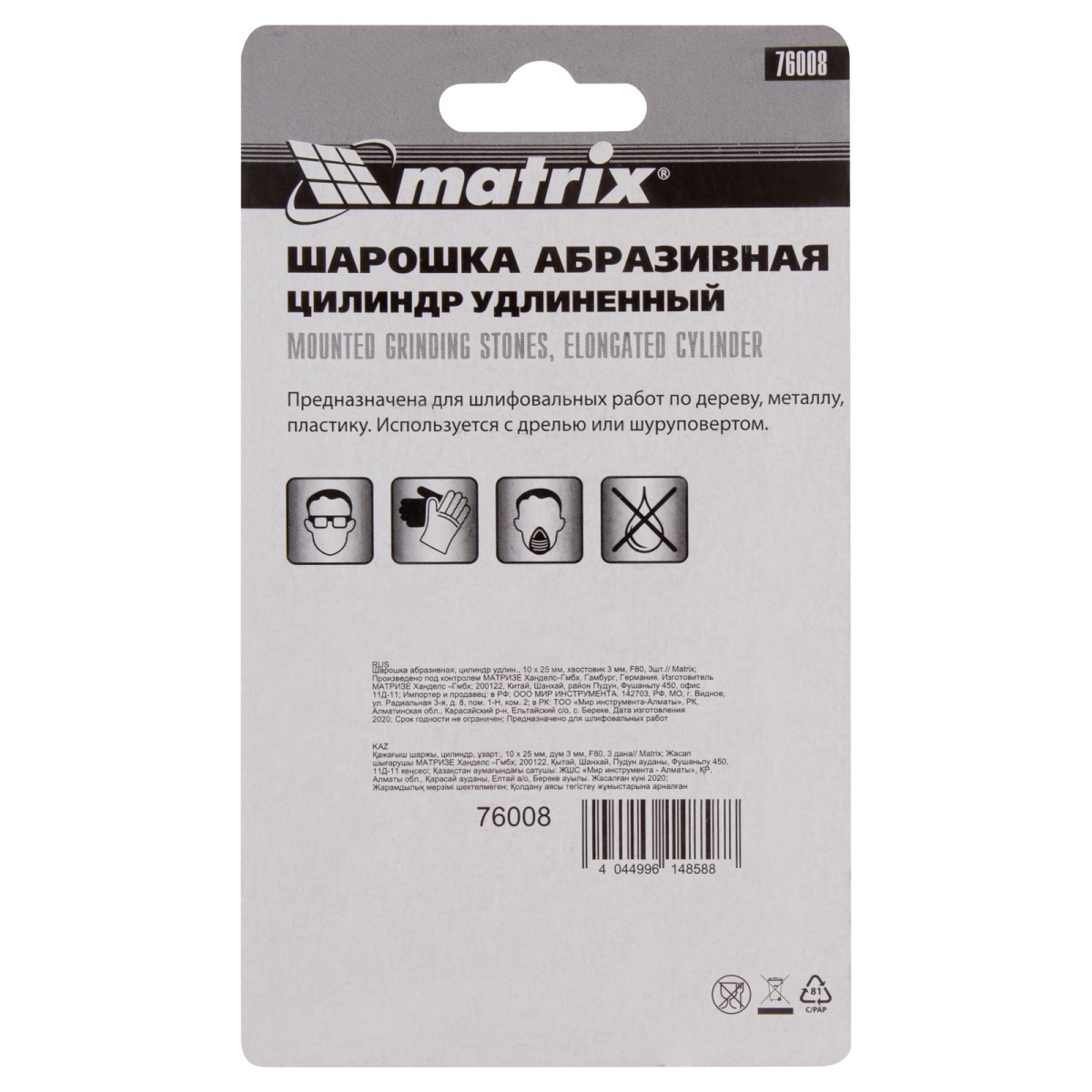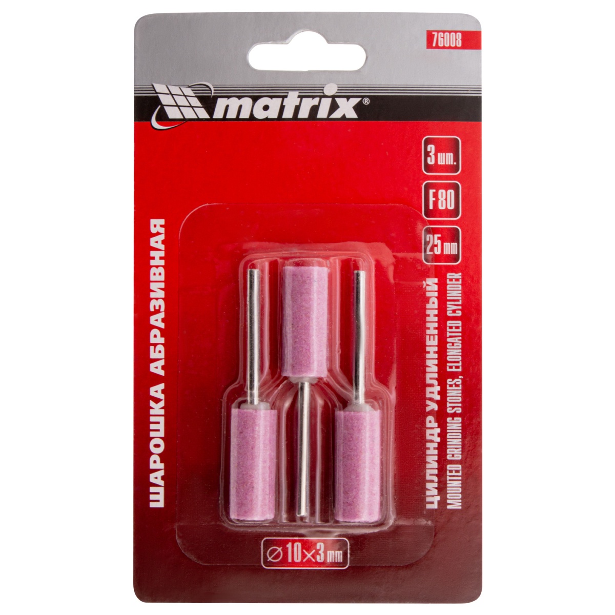 Купить Шарошка абразивная, цилиндр удлиненный, 10 x 25 x 3 мм, F80.3 шт Matrix V7617 по лучшей цене с доставкой - интернет магазин №1 в России