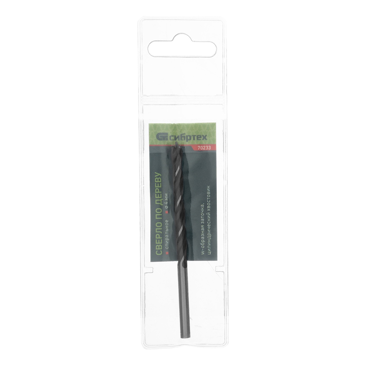 Сверло по дереву, 4 мм, цилиндрический хвостовик Сибртех