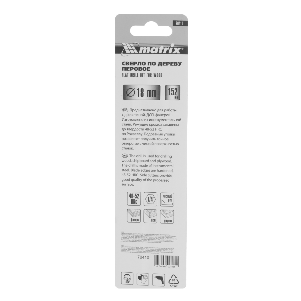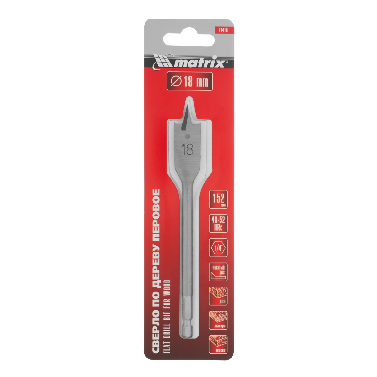Купить Сверло по дереву перовое, 18 мм, шестигранный хвостовик Matrix V6259 по лучшей цене с доставкой - интернет магазин №1 в России