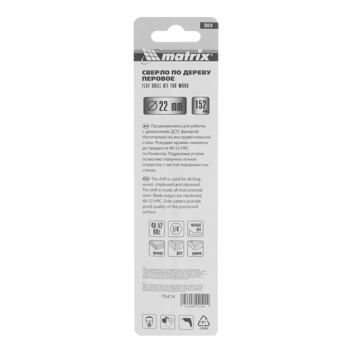 Купить Сверло по дереву перовое, 22 мм, шестигранный хвостовик Matrix V6263 по лучшей цене с доставкой - интернет магазин №1 в России