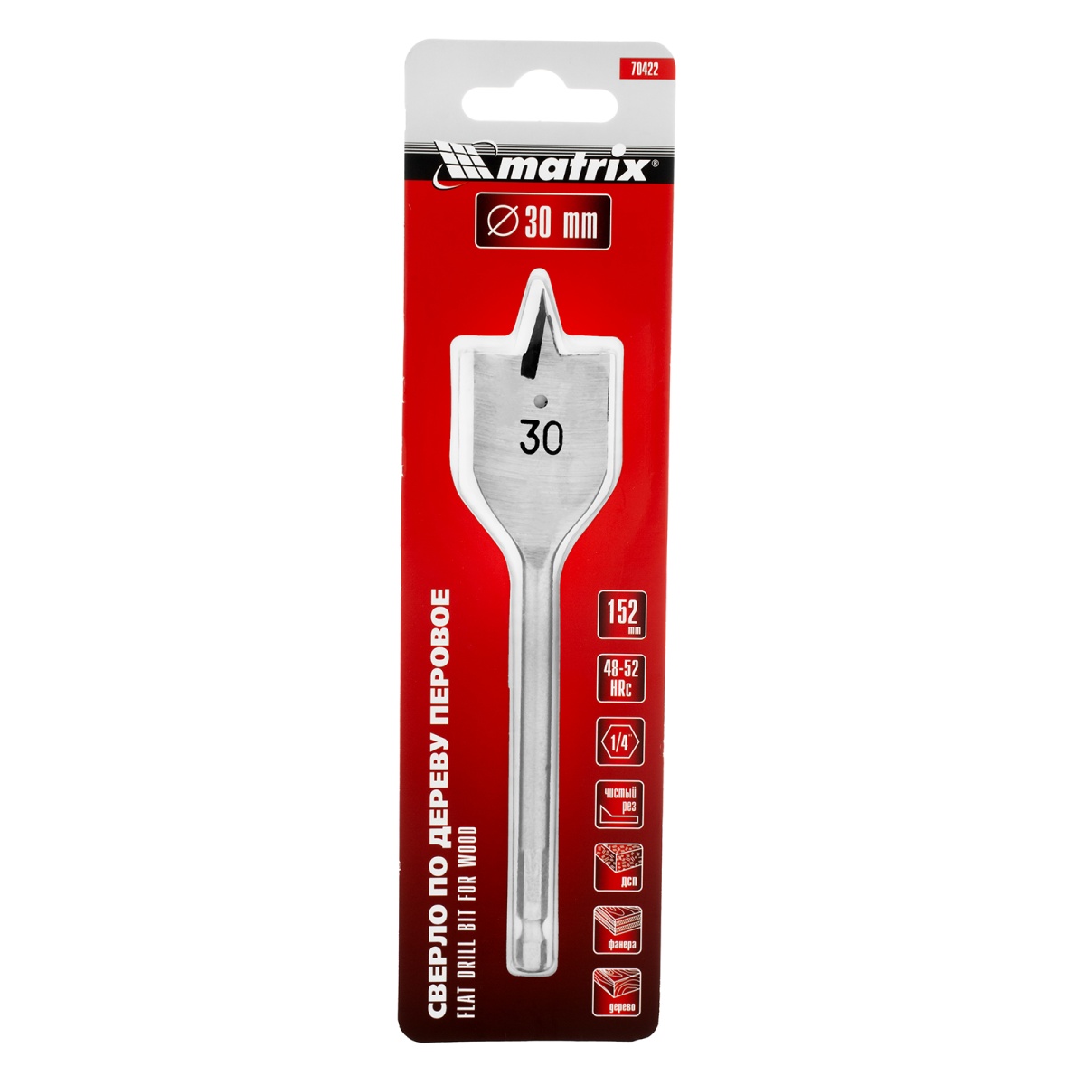 Купить Сверло по дереву перовое, 30 мм, шестигранный хвостовик Matrix V6271 по лучшей цене с доставкой - интернет магазин №1 в России