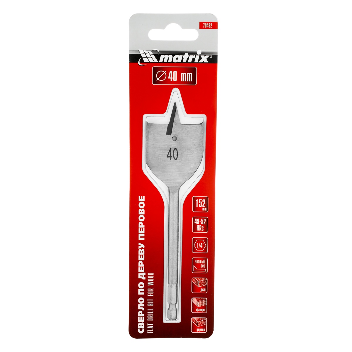 Сверло по дереву перовое, 40 мм, шестигранный хвостовик Matrix