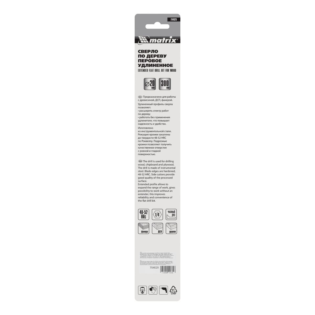 Купить Сверло по дереву перовое удлиненное, 20 х 300 мм, шестигранный хвостовик Matrix V6246 по лучшей цене с доставкой - интернет магазин №1 в России