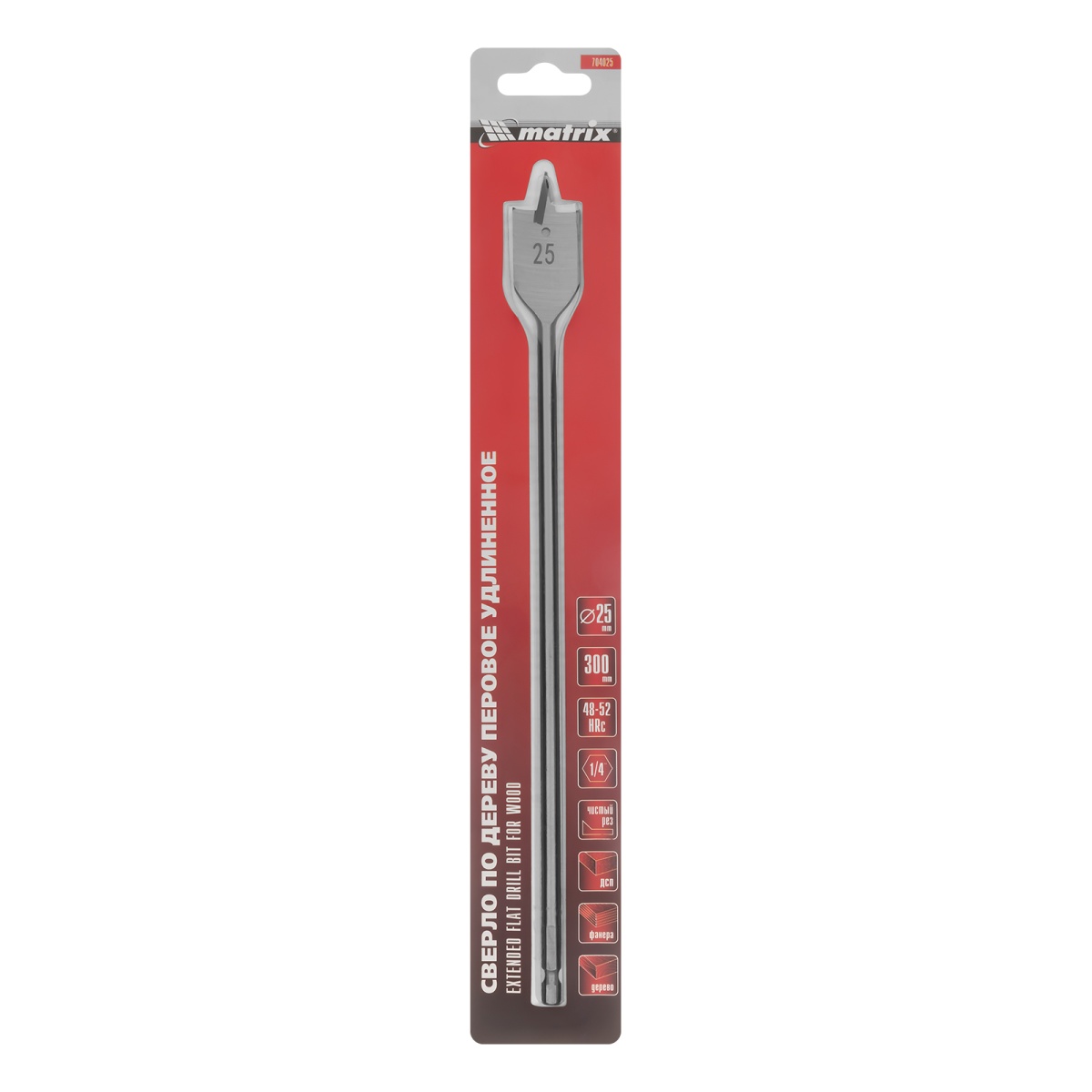 Купить Сверло по дереву перовое удлиненное, 25 х 300 мм, шестигранный хвостовик Matrix V6249 по лучшей цене с доставкой - интернет магазин №1 в России