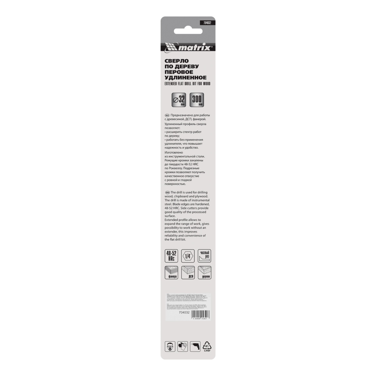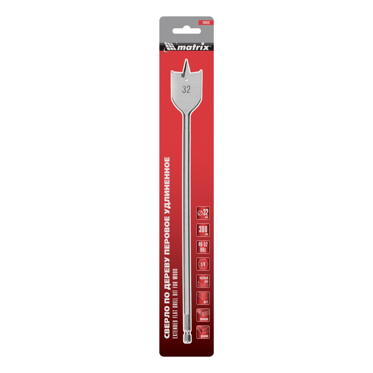Купить Сверло по дереву перовое удлиненное, 32 х 300 мм, шестигранный хвостовик Matrix V6250 по лучшей цене с доставкой - интернет магазин №1 в России