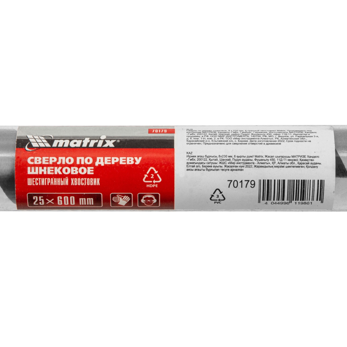 Купить Сверло по дереву шнековое, 25 х 600 мм, шестигранный хвостовик Matrix V6305 по лучшей цене с доставкой - интернет магазин №1 в России
