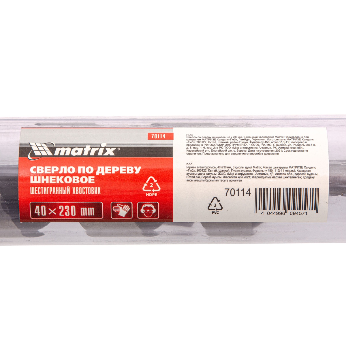 Купить Сверло по дереву шнековое, 40 х 230 мм, шестигранный хвостовик Matrix V6317 по лучшей цене с доставкой - интернет магазин №1 в России
