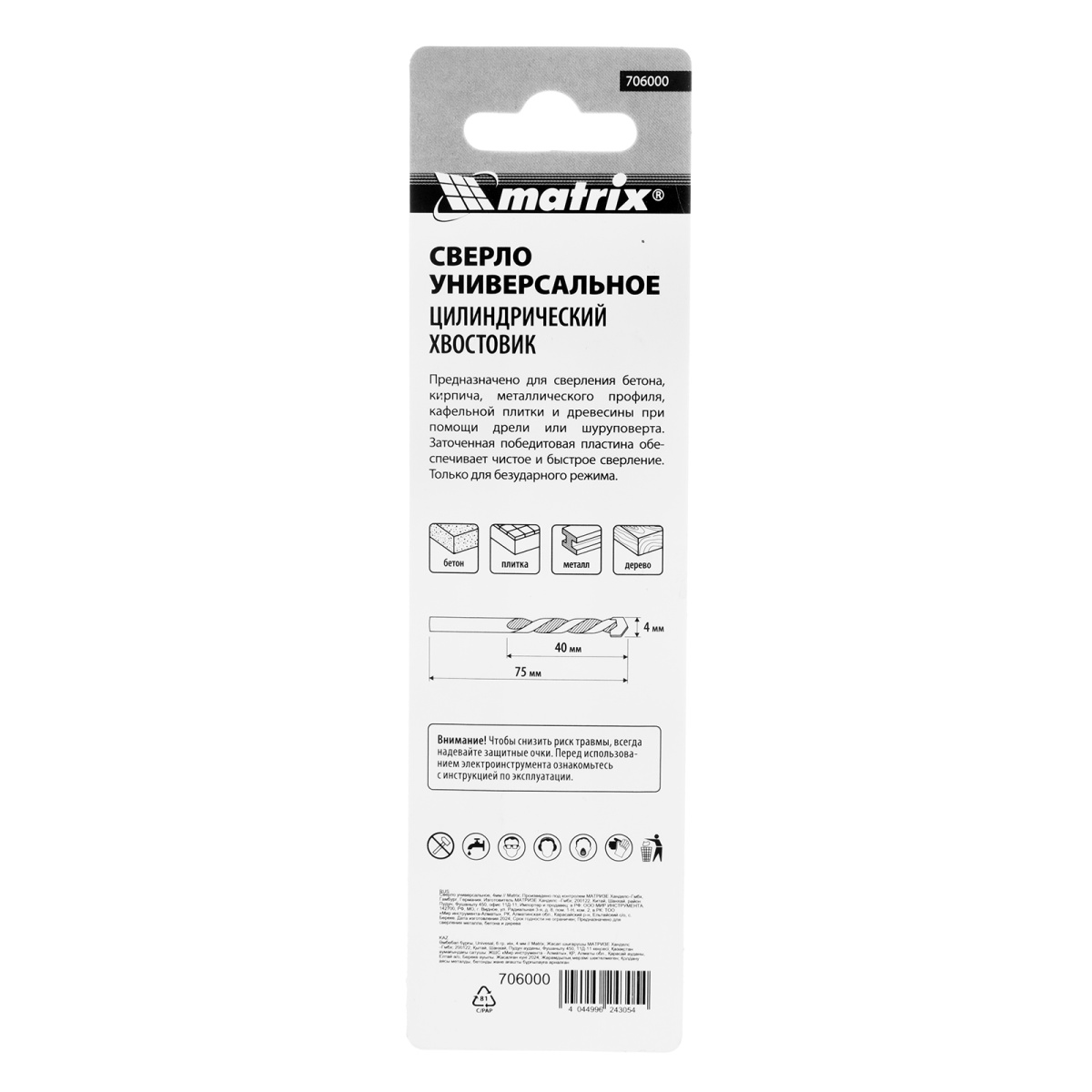 Купить Сверло универсальное, 4мм Matrix V6530 по лучшей цене с доставкой - интернет магазин №1 в России