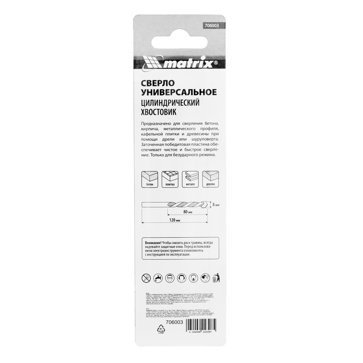 Купить Сверло универсальное, 8мм Matrix V6532 по лучшей цене с доставкой - интернет магазин №1 в России