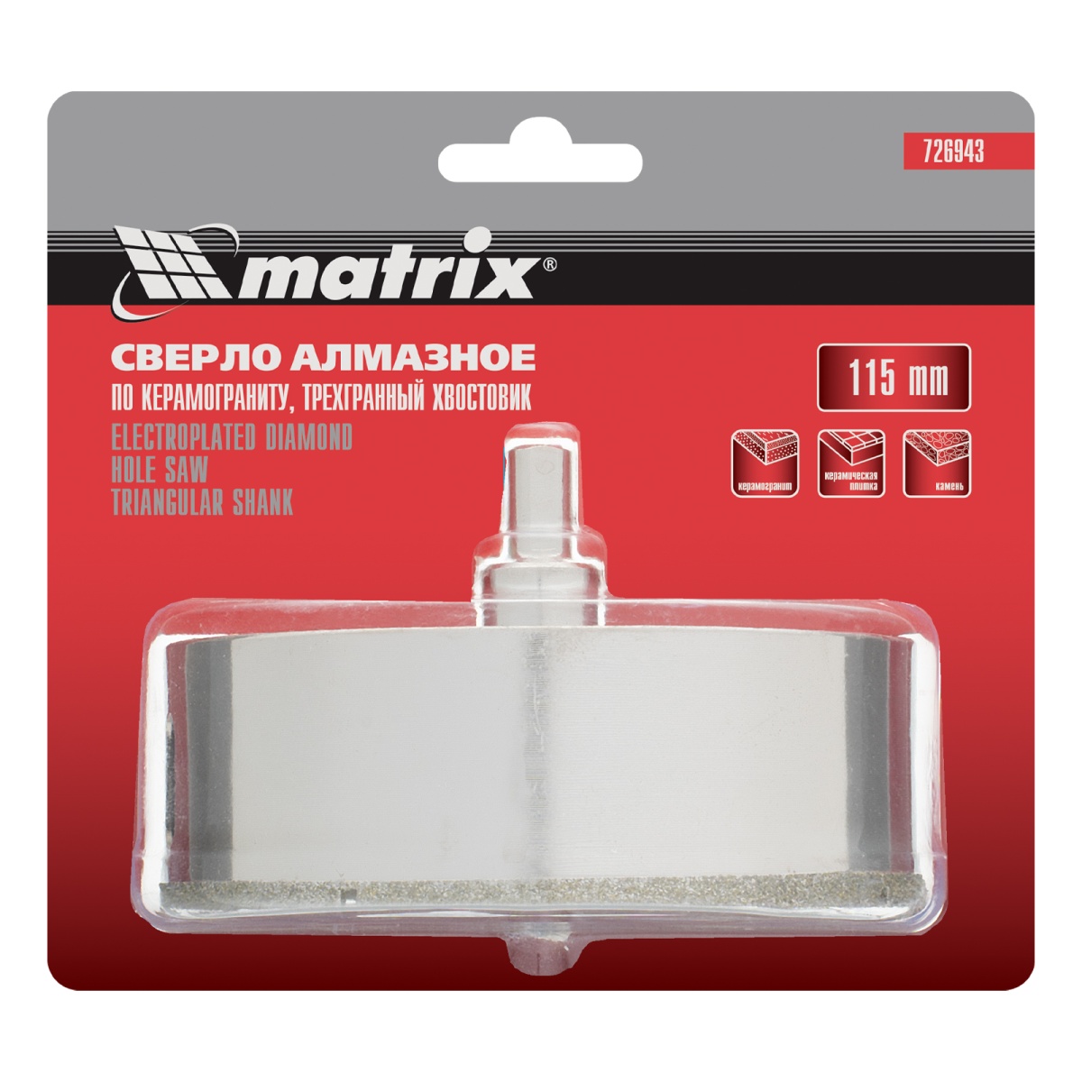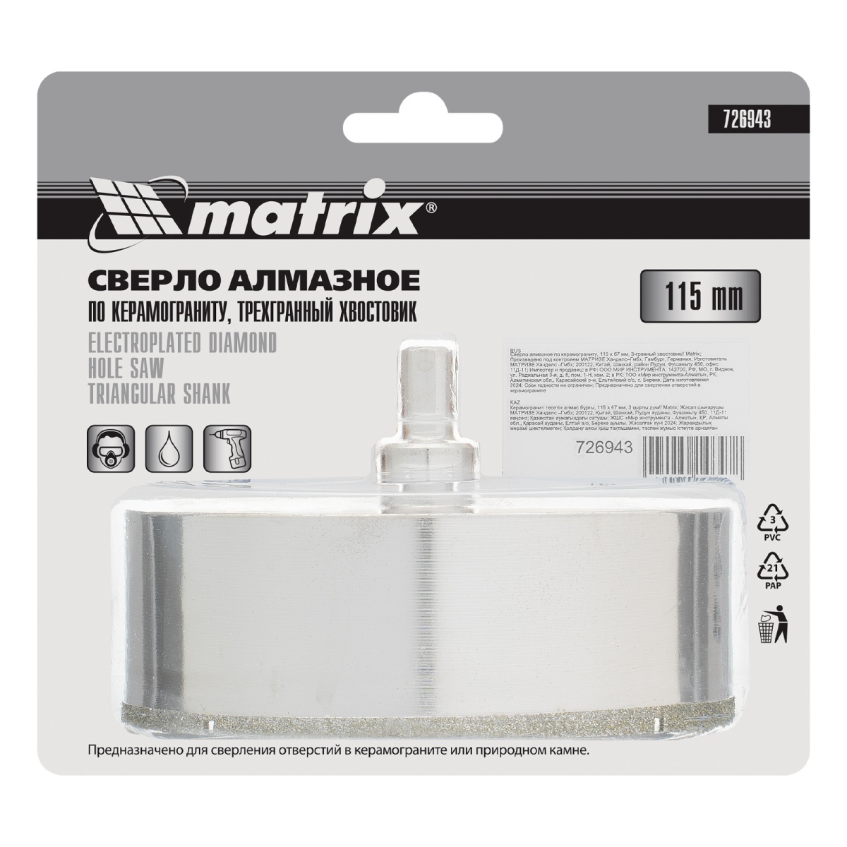 Купить Сверло алмазное по керамограниту, 115 х 67 мм, трехгранный хвостовик Matrix V6200 по лучшей цене с доставкой - интернет магазин №1 в России