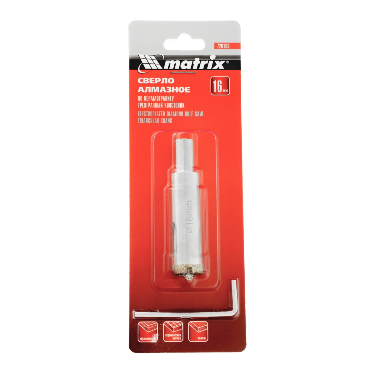 Купить Сверло алмазное по керамограниту, 16 х 67 мм, трехгранный хвостовик Matrix V6204 по лучшей цене с доставкой - интернет магазин №1 в России
