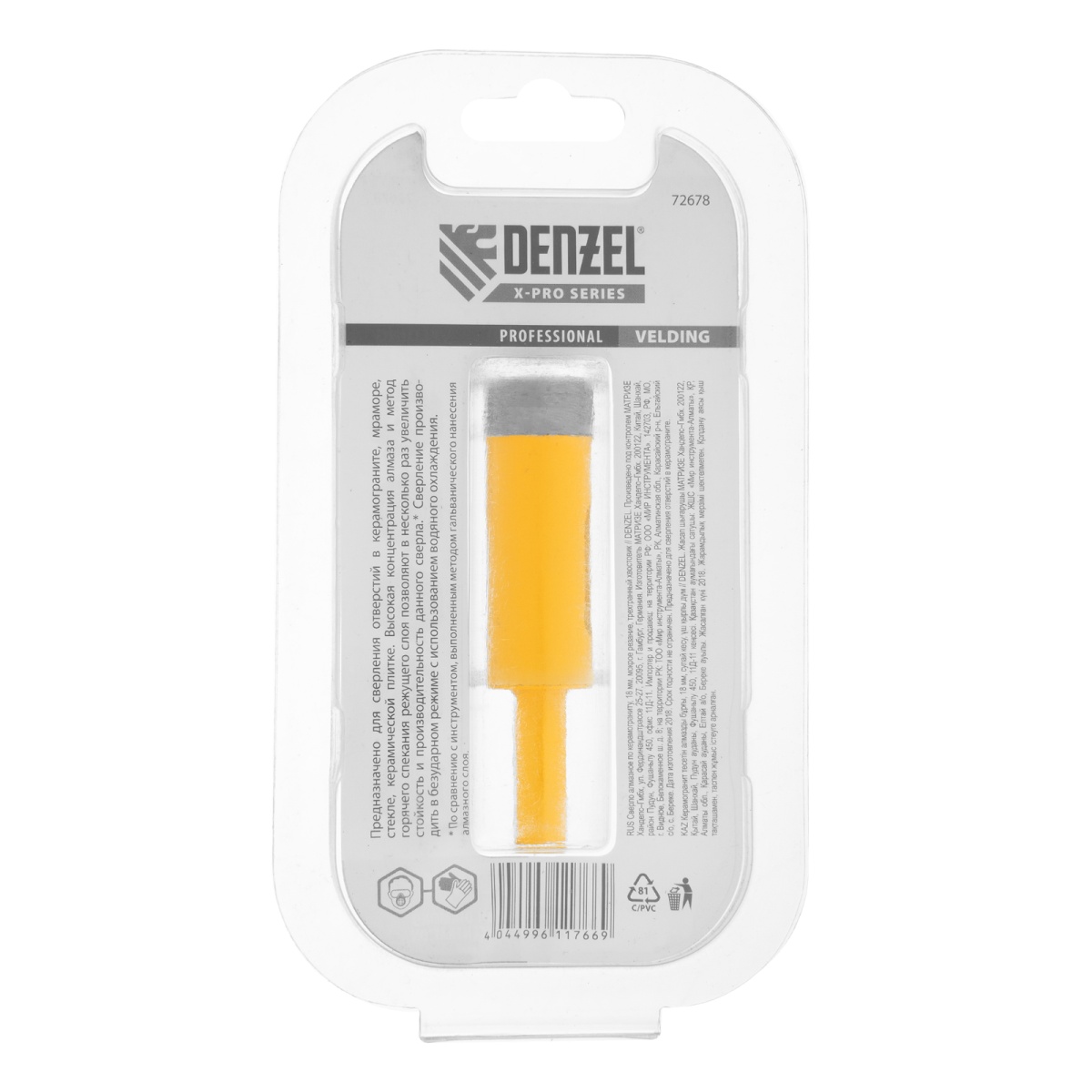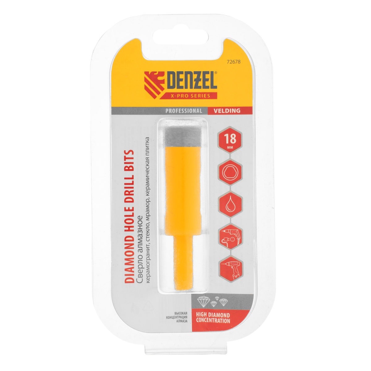 Купить Сверло алмазное по керамограниту, 18 мм, мокрая резка, трехгранный хвостовик Denzel V6205 по лучшей цене с доставкой - интернет магазин №1 в России