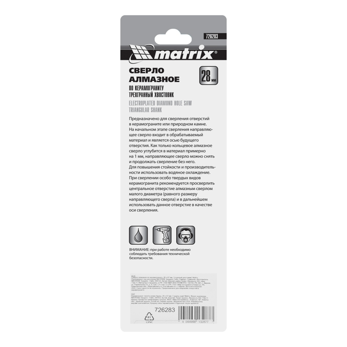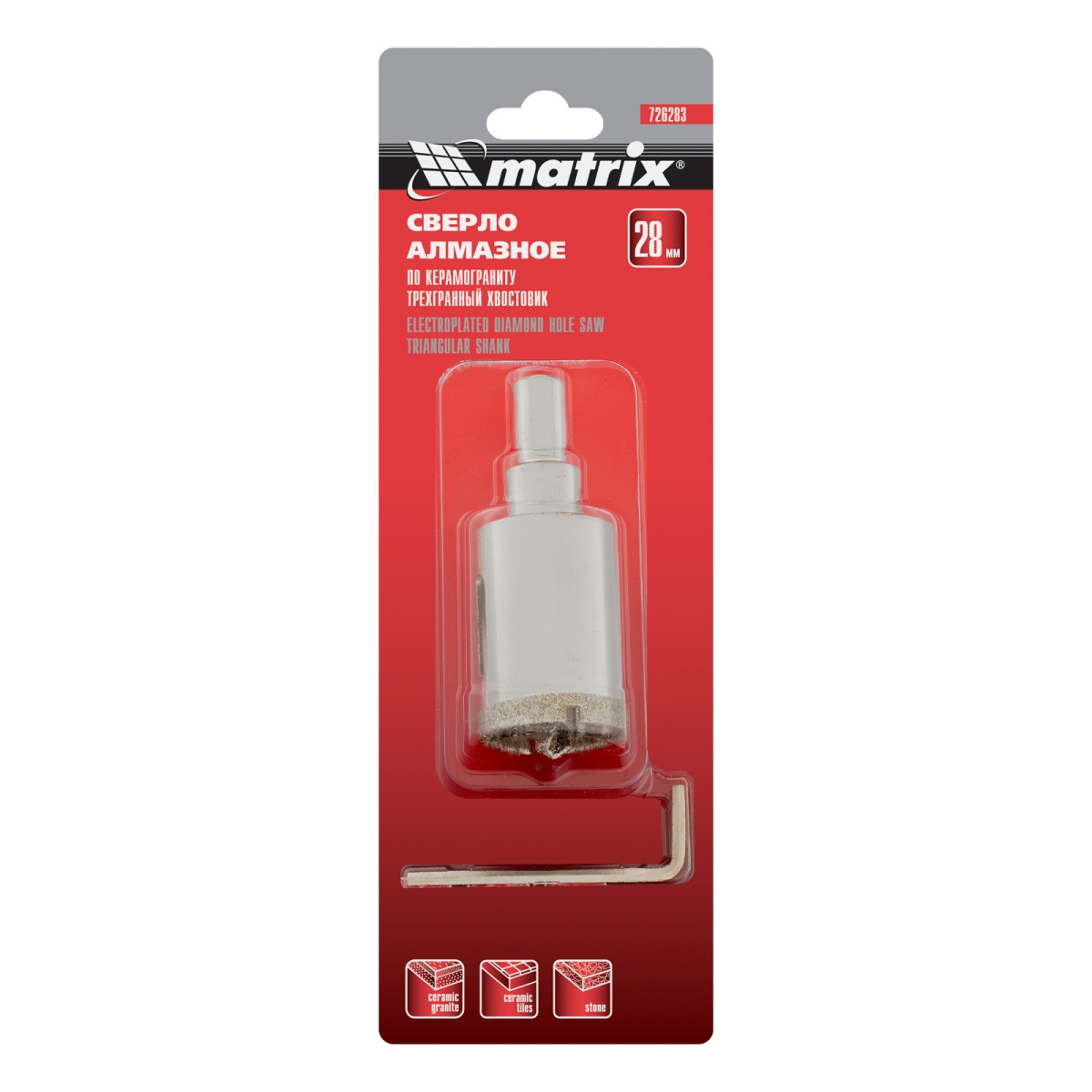 Купить Сверло алмазное по керамограниту, 28 х 67 мм, трехгранный хвостовик Matrix V6211 по лучшей цене с доставкой - интернет магазин №1 в России