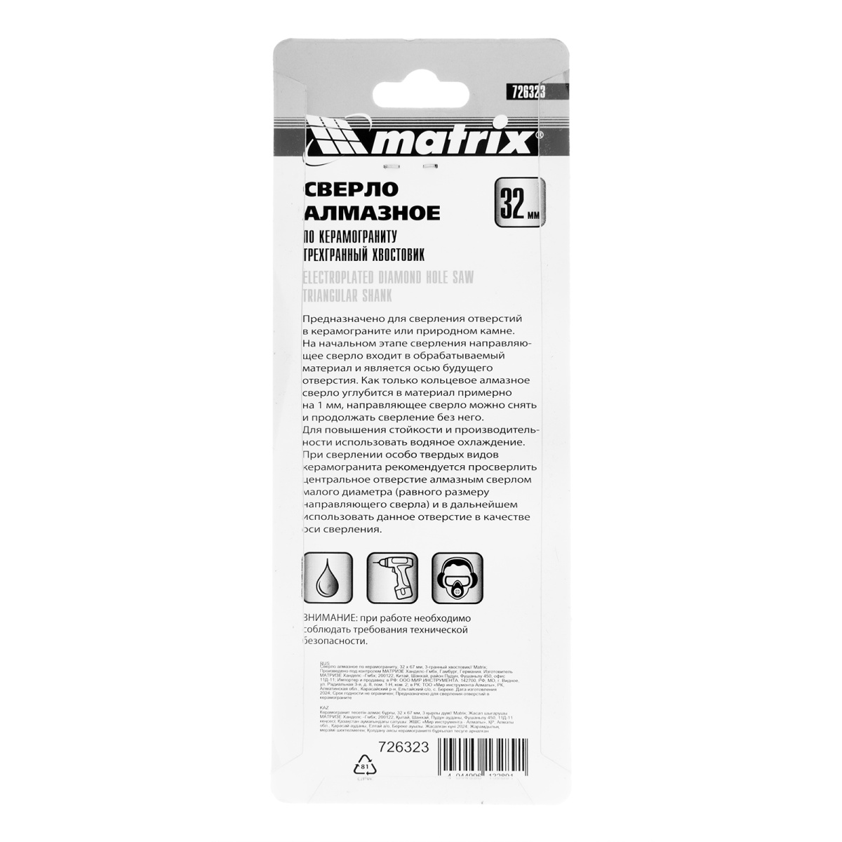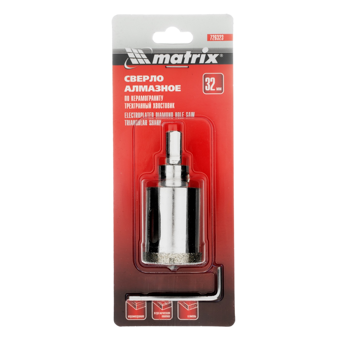 Купить Сверло алмазное по керамограниту, 32 х 67 мм, трехгранный хвостовик Matrix V6213 по лучшей цене с доставкой - интернет магазин №1 в России