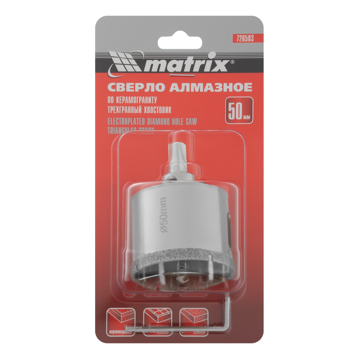 Купить Сверло алмазное по керамограниту, 50 х 67 мм, трехгранный хвостовик Matrix V6218 по лучшей цене с доставкой - интернет магазин №1 в России